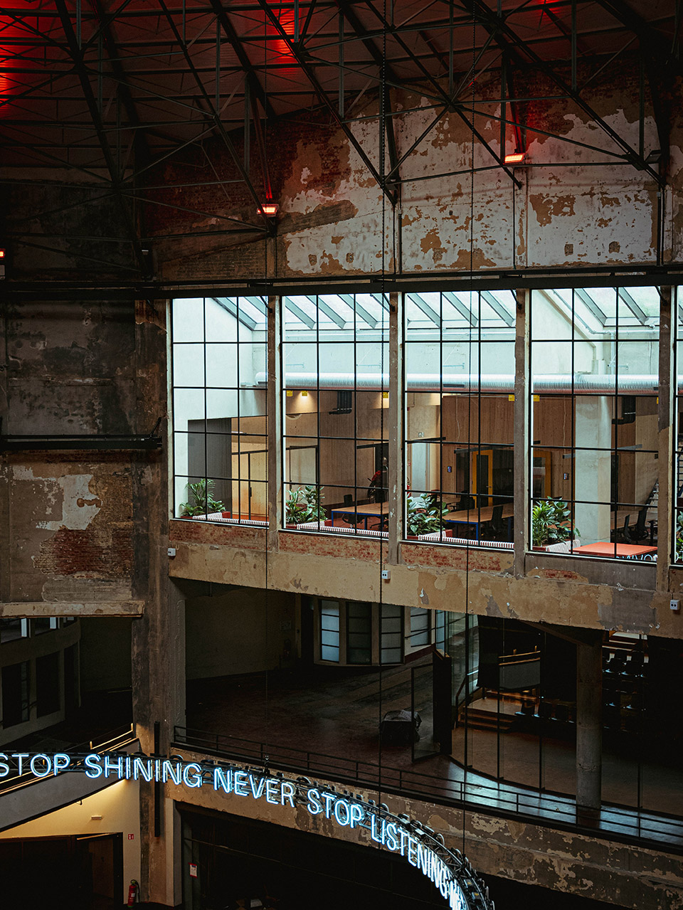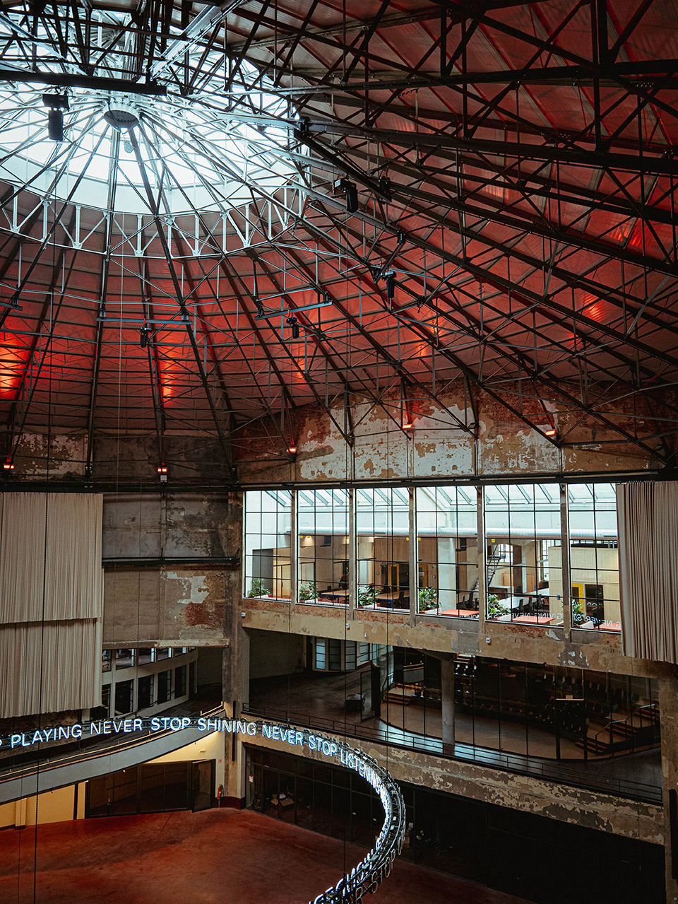 — The top of the enclosing guest area retains part of the full height, to break the oppression of the height drop as much as possible.