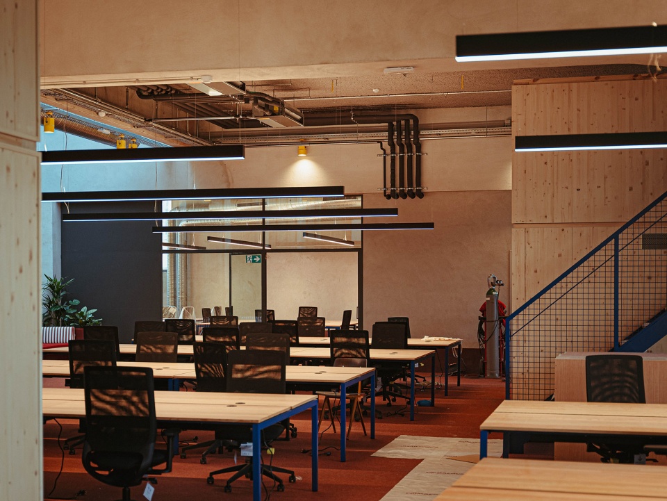 Main materials: concrete, terrazzo, recycled wood, old slate