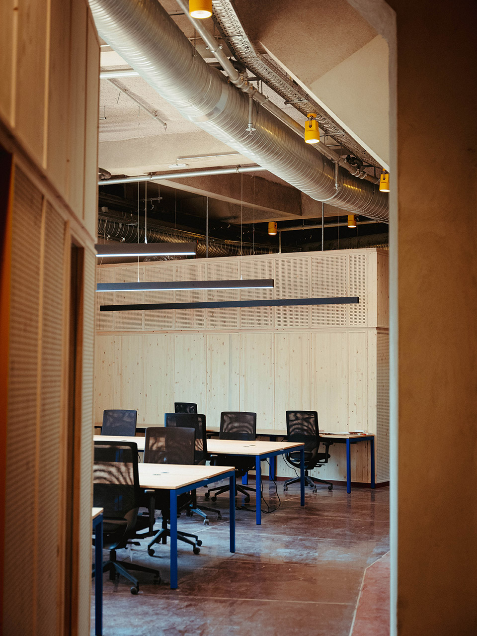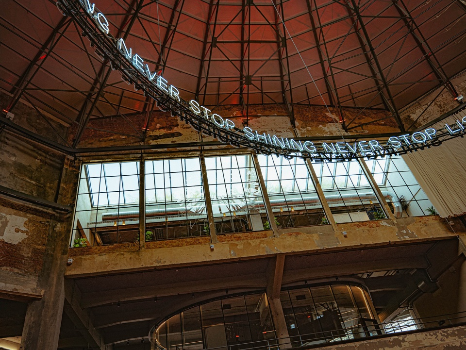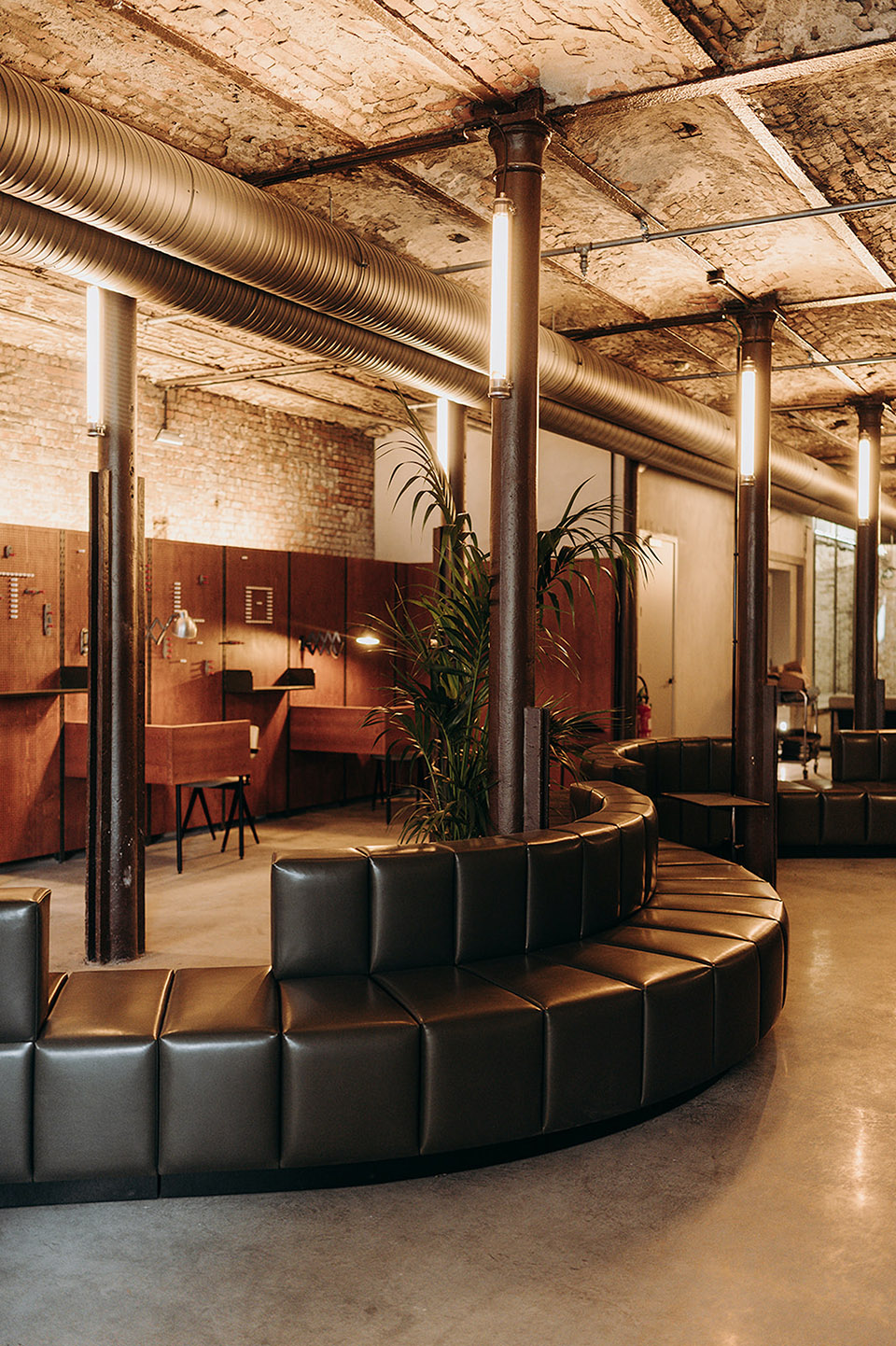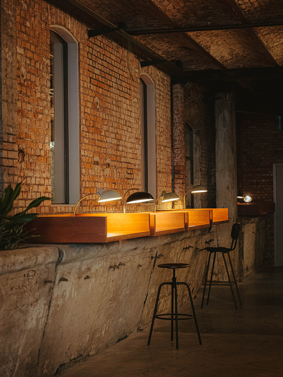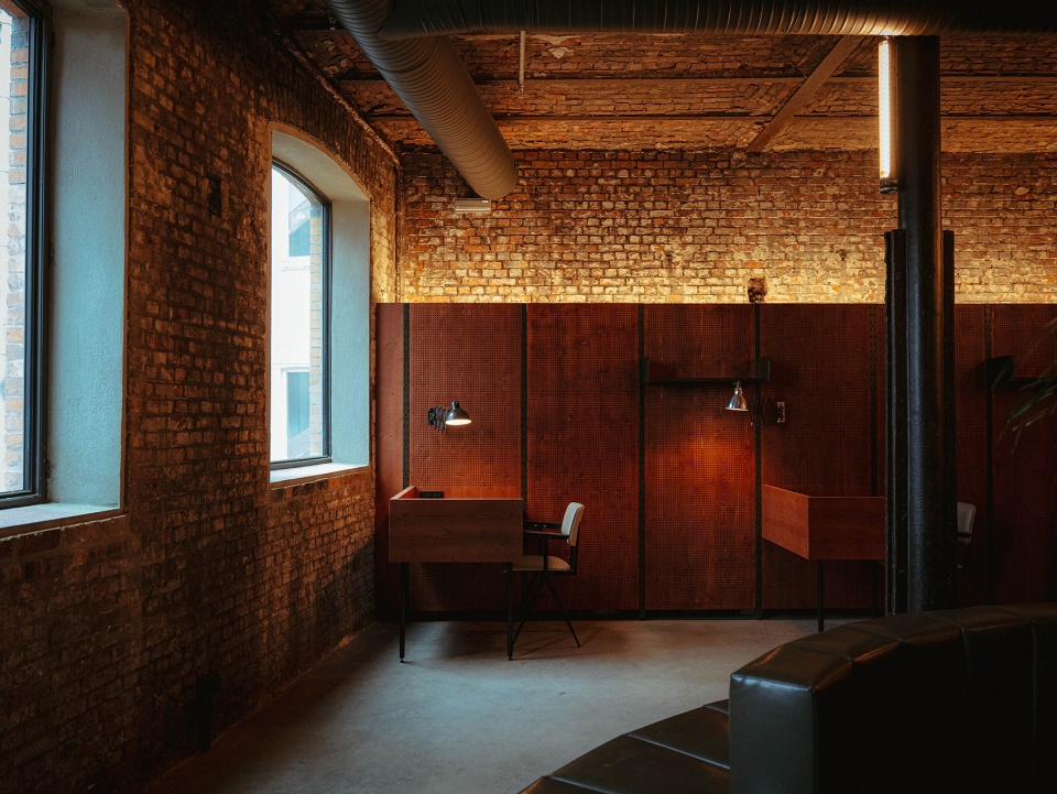 — 吧台上方的顶部受原管道影响最小,设计中保留了通高裸顶。
