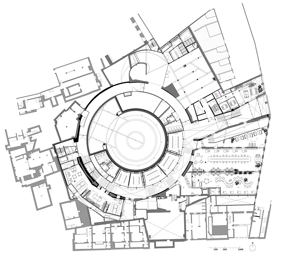 The Sajiao restaurant has 4.55M height, but the top surface is all over the various equipment pipes of the food city, which is huge and messy. The design is sorted out by regions.