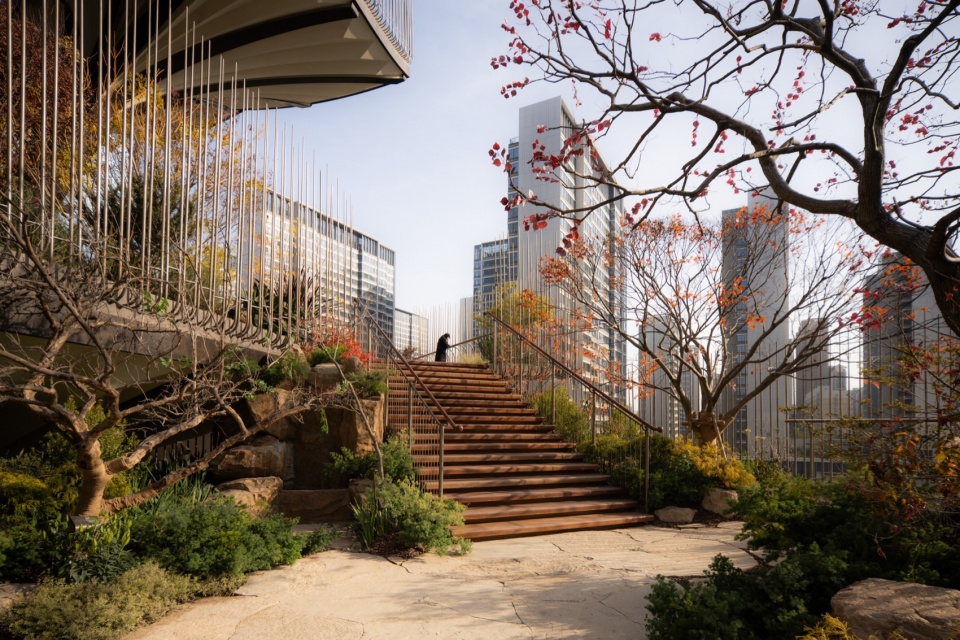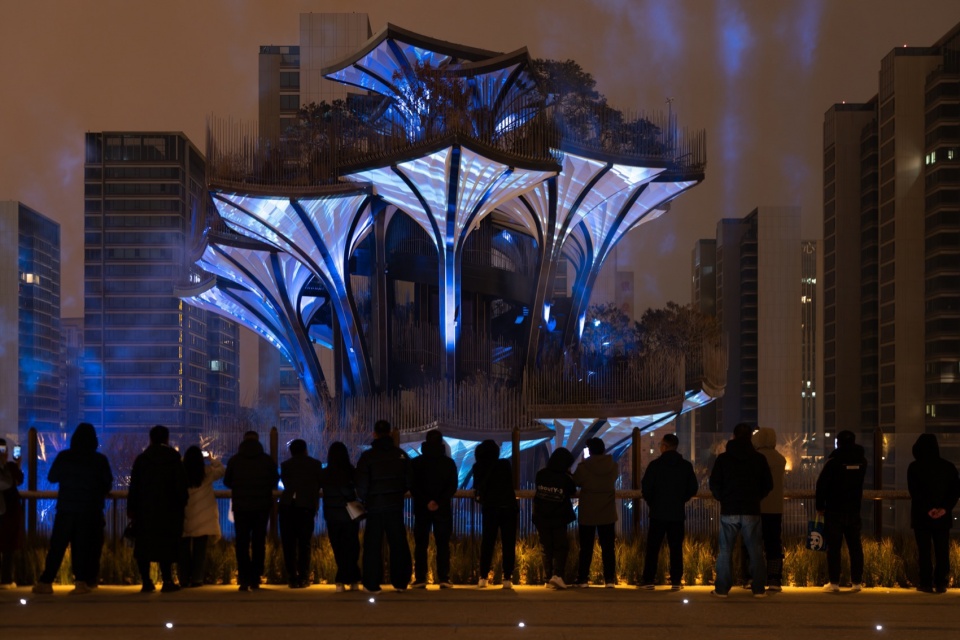 生命之树的游览是一次壮观的旅程,人在逐级登高过程中也随着景致的变幻而拥有完全不同的视觉观感和游逛体验。这座四季常新的空中花园,在时间的进程中与植株的壮硕细微,与风霜雪露共生,等待人们踏入一段探索发现的旅程。