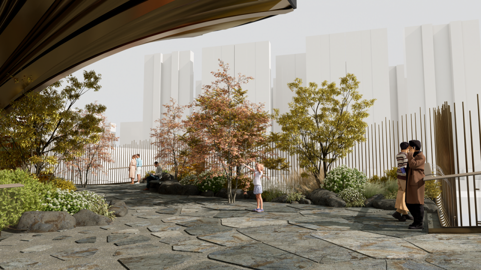 We went in search of the most typical habitat features of each ecological zone. As an example, we searched for the unique natural picture of the mountain forest ecoregion, where pure fern gardens grow birch trees. It just so happens that the river birch is suited to the local climate, so the designers used it as a tree. Cooper’s Fern and Scaly Fern are used as the middle layer, Irish Pearl Grass and Fine Pine Needles are used as the bottom layer of the plant, while the dark gray tone paving with slate patchwork is used to create the feeling of wet mountain forest. Come fall and winter, when the river birch leaves change color and drop, the fern garden sustains the greenery of winter.