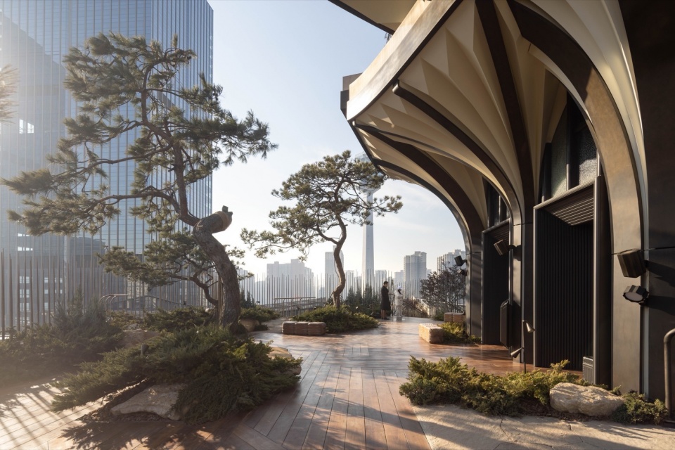 ▼顶层平台以松为主题,犹如登顶华山之巅,The top platform with the theme of pine is like climbing to the top of Huashan Mountain