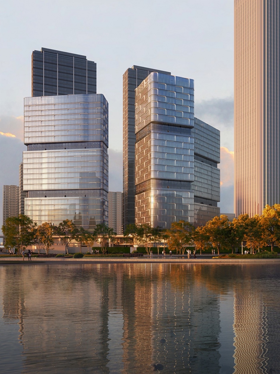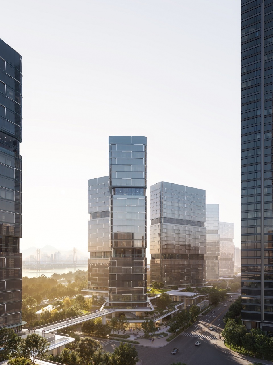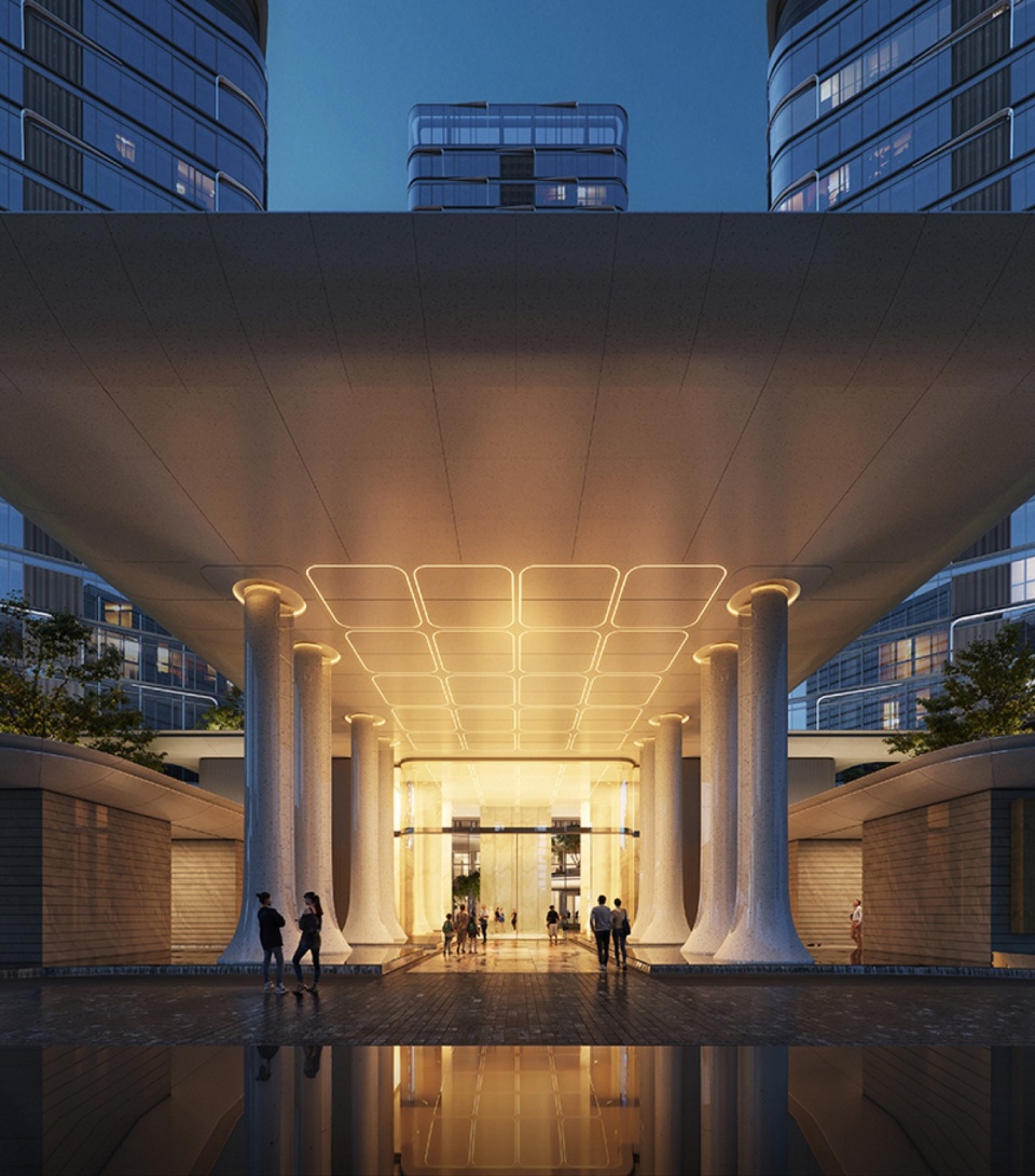 Based on the full integration of internal spaces and the external river view resources, the high-rise towers adopted a more feasible ribbed grid beam cantilever structure, providing a flexible and adaptable spatial layout, while reserving flexible space for uncertain usage scenarios.