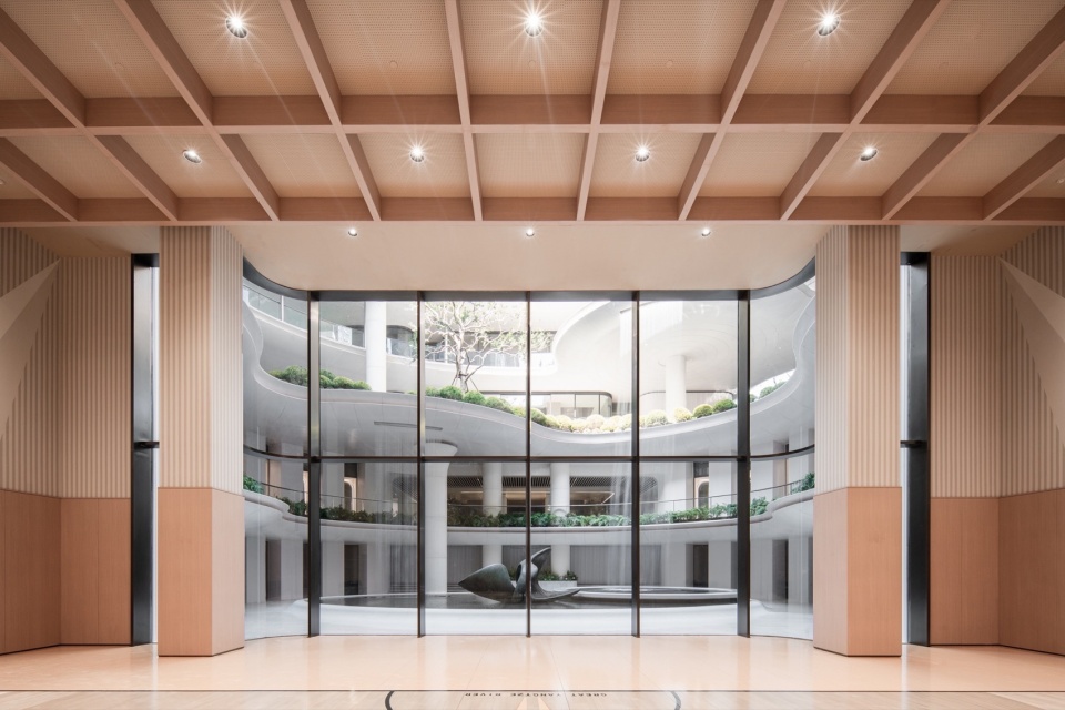 “生机之环”的中央庭院,整合了采光、景观与流线,通过环形路径实现各楼层的高效连通与人流分流。