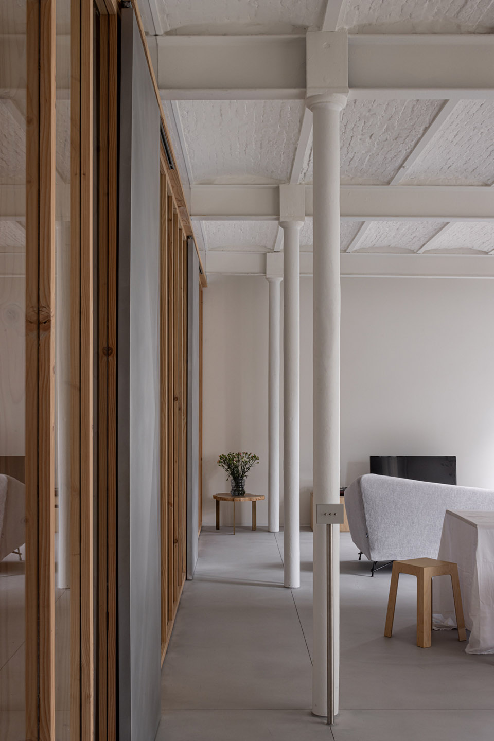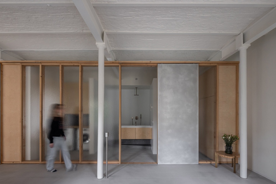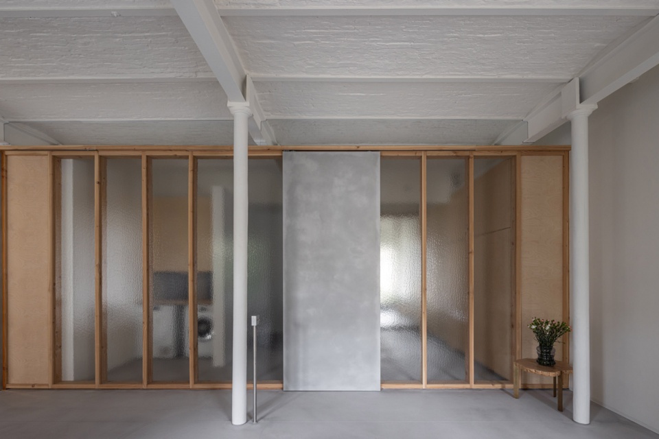 在需要更多隐私的地方,设计使用了纹理玻璃。滑动部分和固定部分采用不同的材质,使滑动门的使用直观易懂。当面板打开时,阁楼的开放感得以保留;而当需要时,住户也可以关闭面板,在安静的私人空间中休息。即使隔开了其他住户,空间仍然充满自然光线。