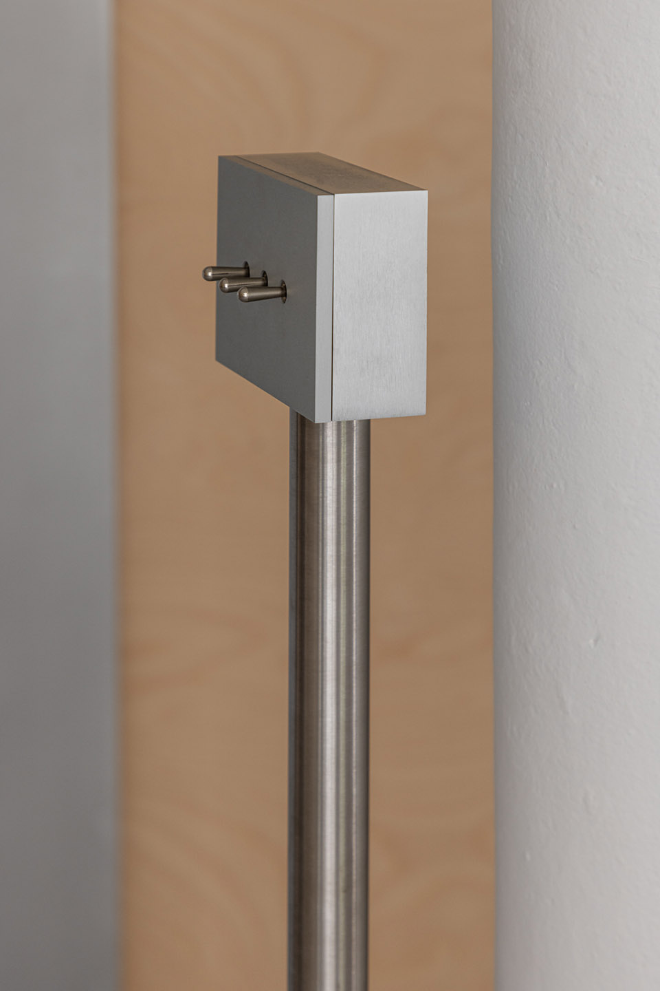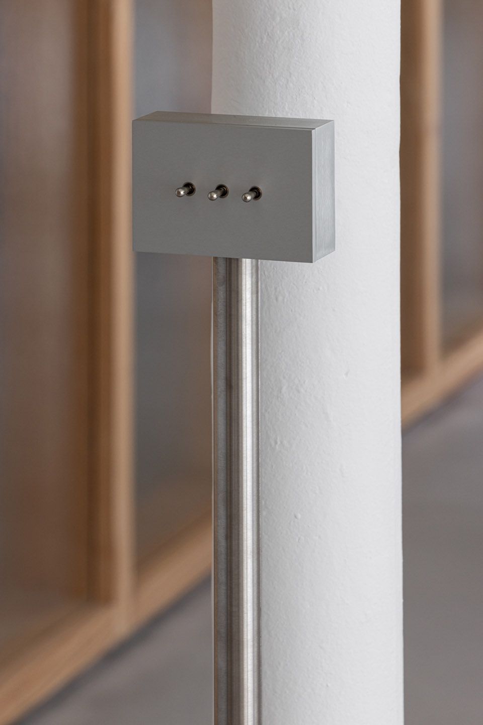 A lot of attention was put in to the details, not only for aesthetics. For instance, we designed the light switches to be stand-alone beautiful objects, positioned in a way that made sense. The approach reinforced the concept where we wanted to subtly guide the resident along the different functional spaces fostering an intuitive flow. Similarly, we employed different floor finishes around the fixed furniture in the kitchen and bathroom. This also establishes implicit boundaries without a real physical presence, instead relying on suggestive intentions.