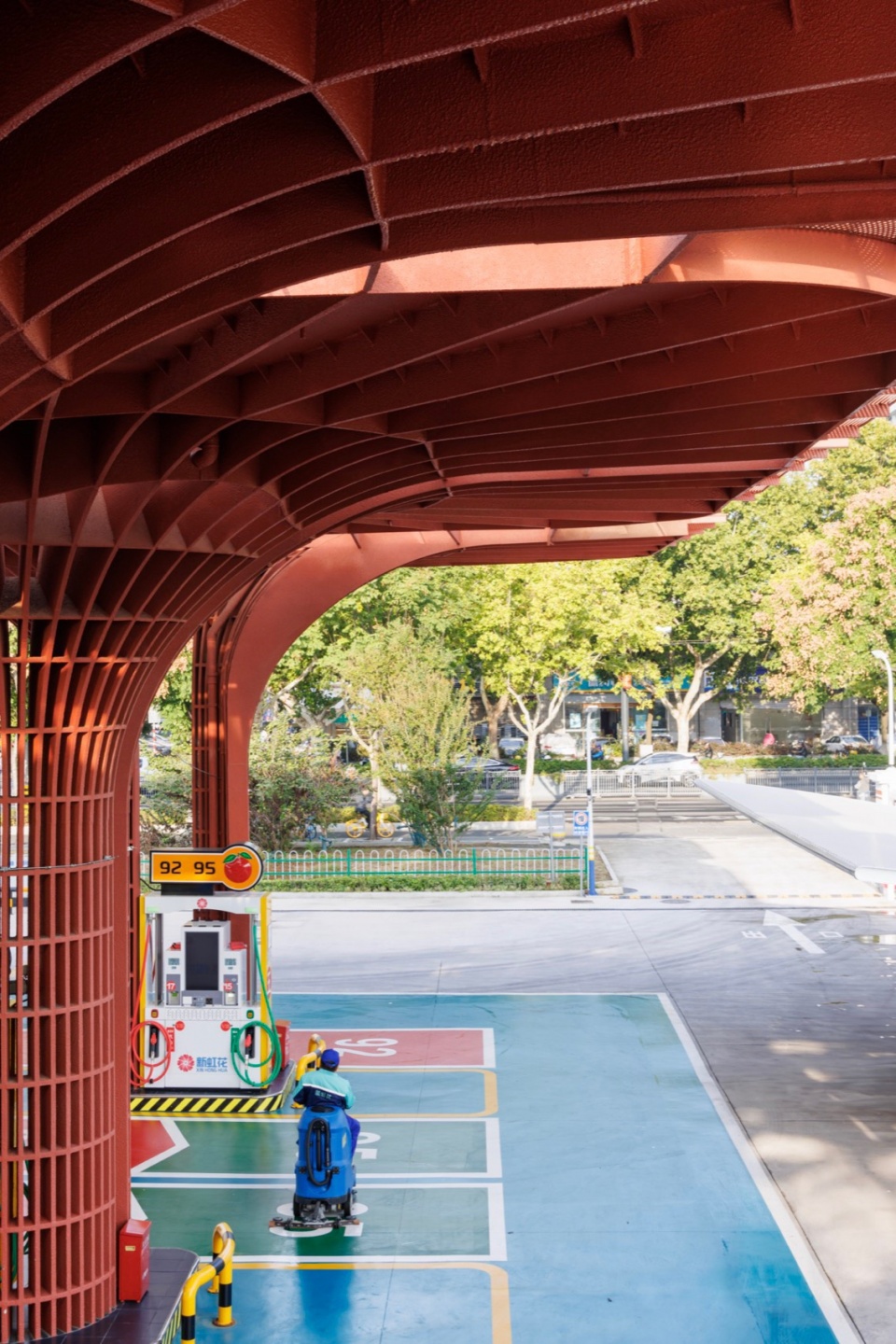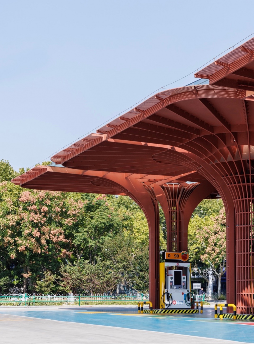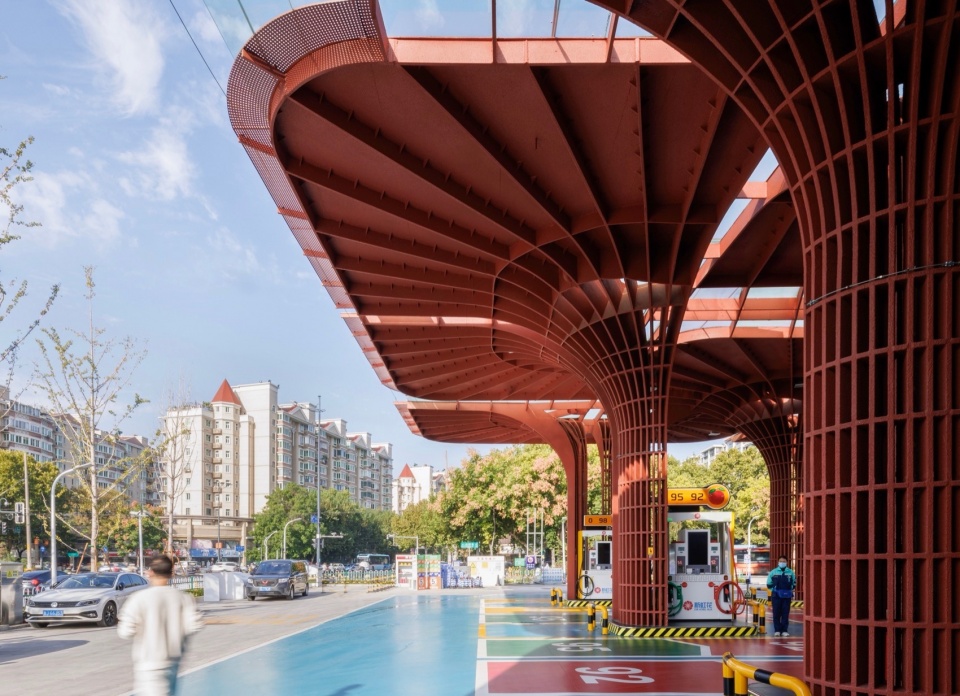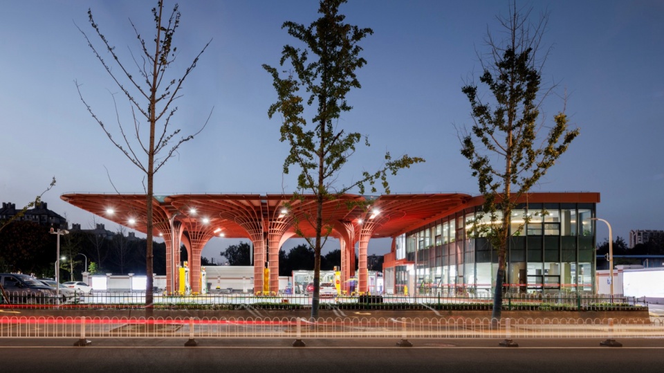 加油站设计以建筑设计为抓手 ,整合了功能 、形态 、文化 、城市性等多种要素和信息 ,让基础设施转变成为高品质城市驿站 ,让简练隽永的几何红花绽放在红花盛开的地方。