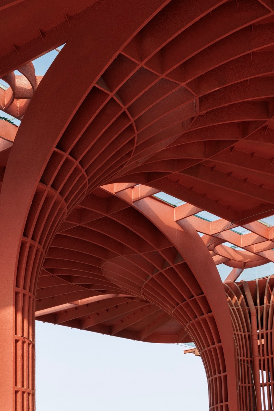 ▼交错形成的的红花形态罩棚,Canopy Formed by Interlocking Red Flower Shapes