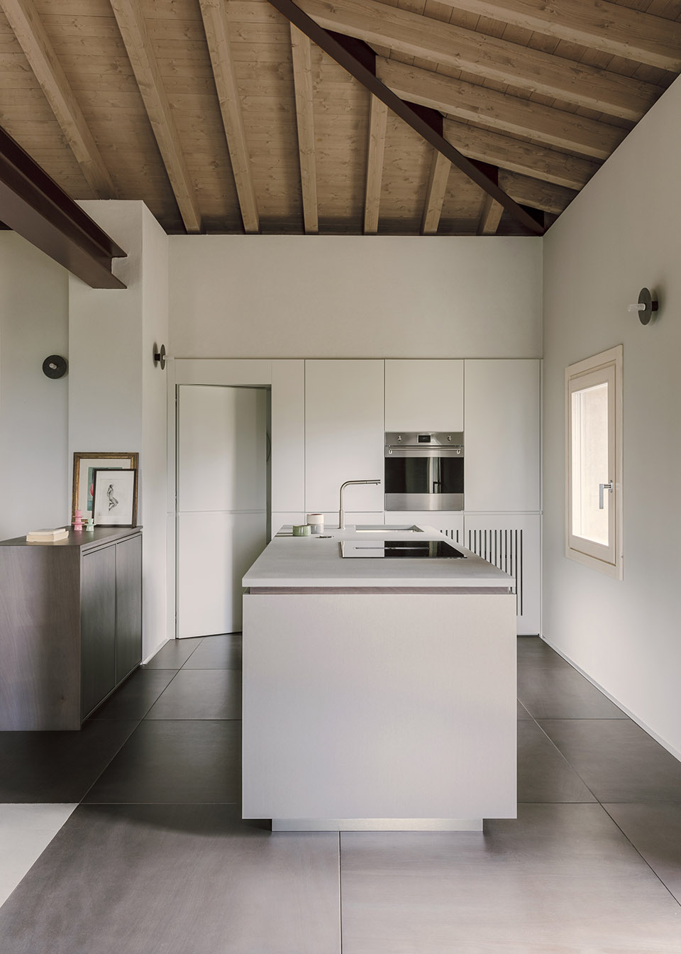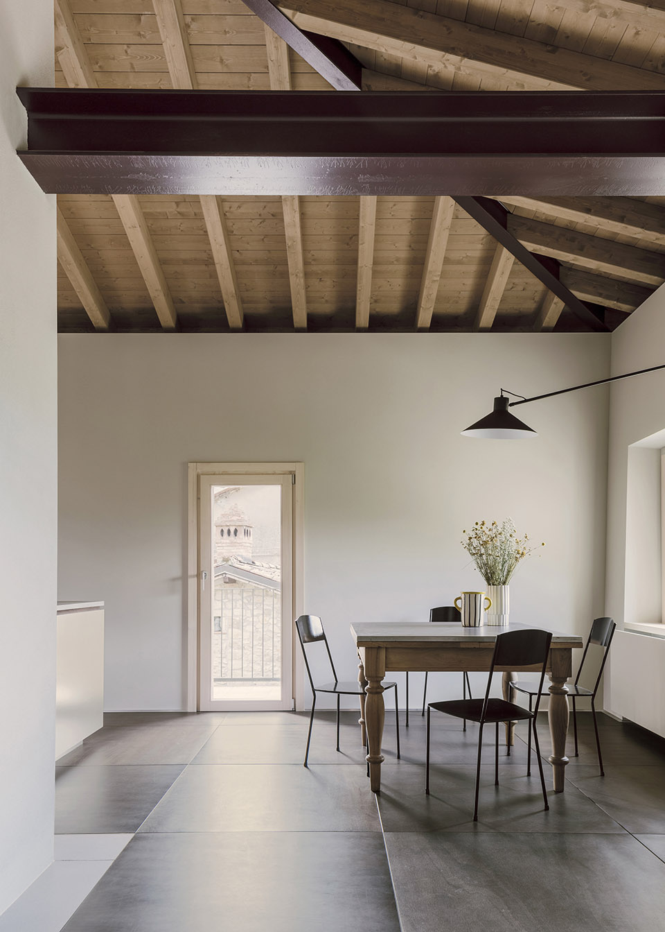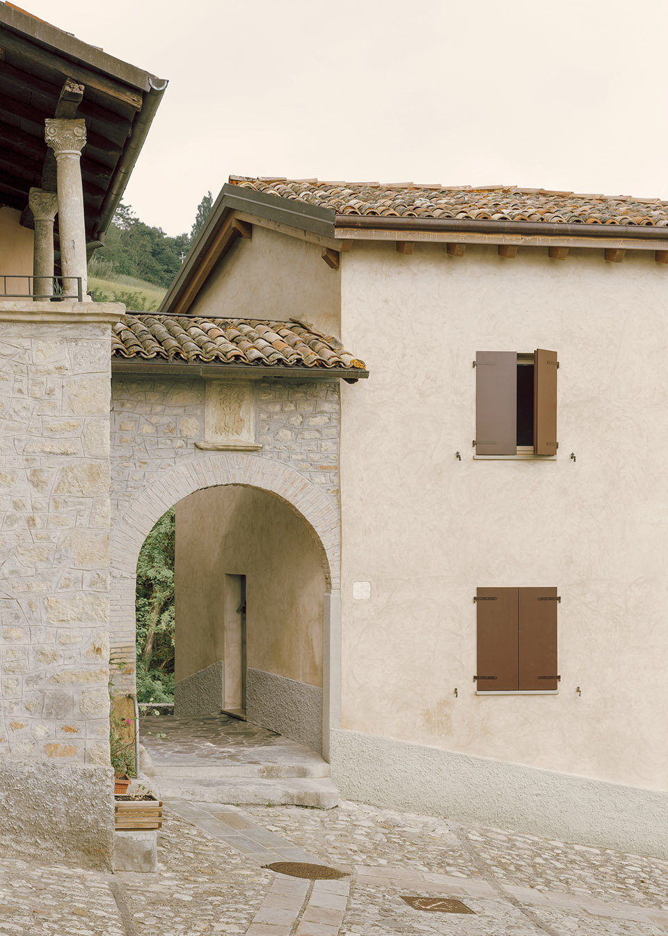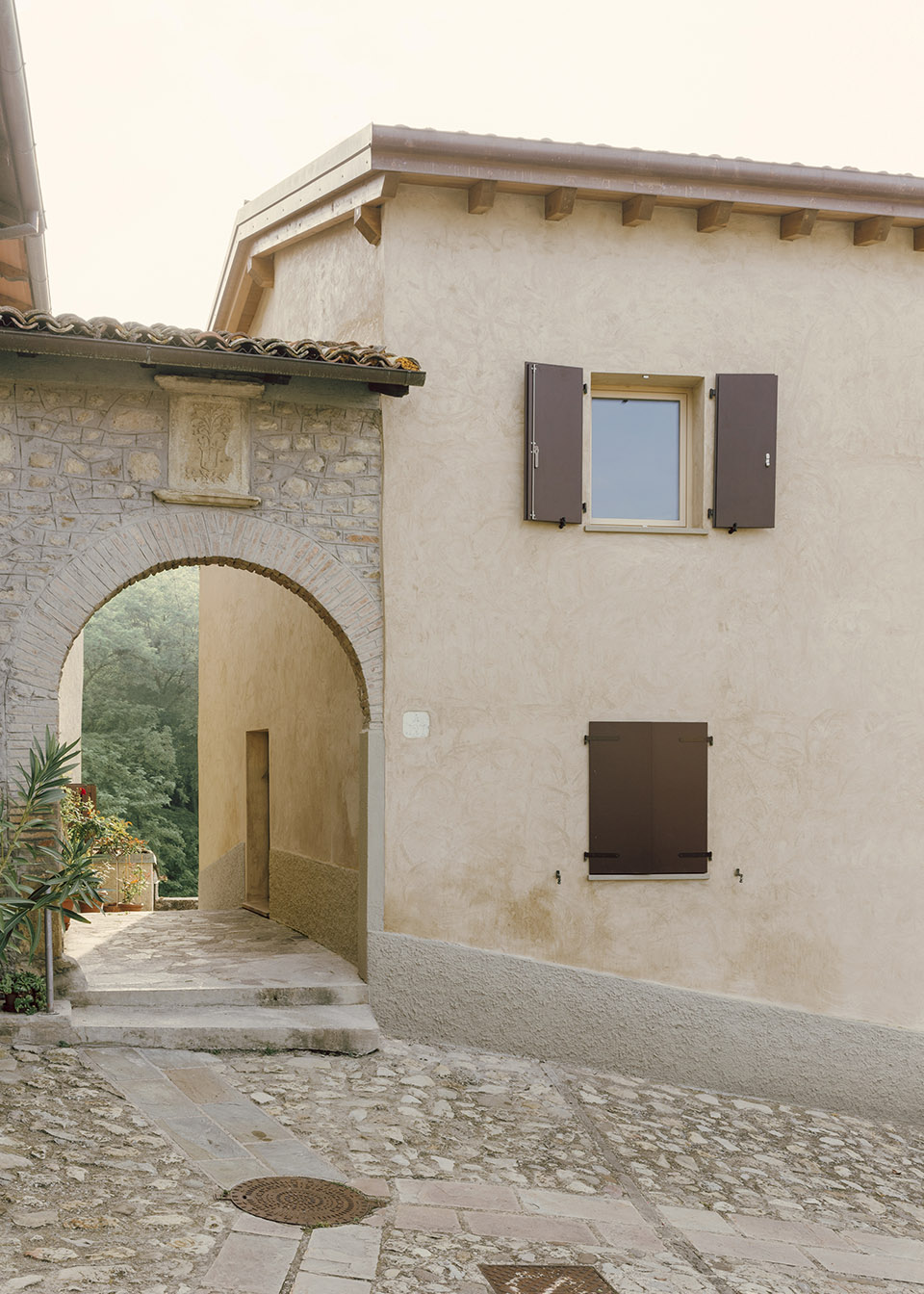 Ca’ Norina overlooks the eastern side of the village and consists of an 18th-century primary structure alongwith a post-war annex. The project was born from the client’s desire to create a two-story apart- ment, not just aholiday home but a true residence where the whole family could gather.