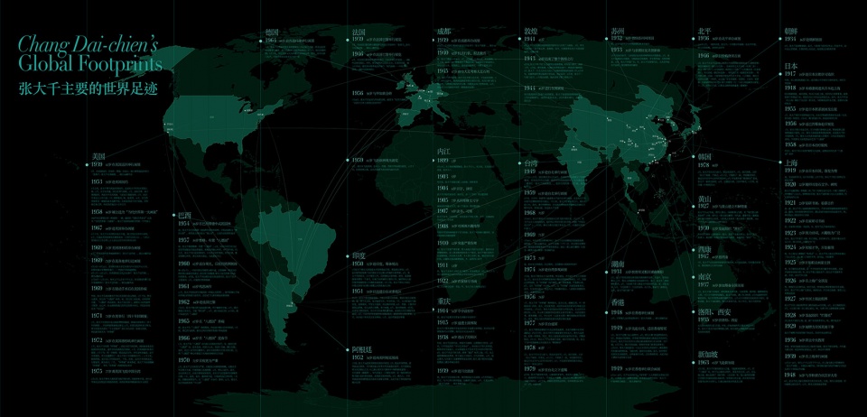 In the third section, a world map and a chronological table are used to fully describe Chang Dai-chien’s journey of life.