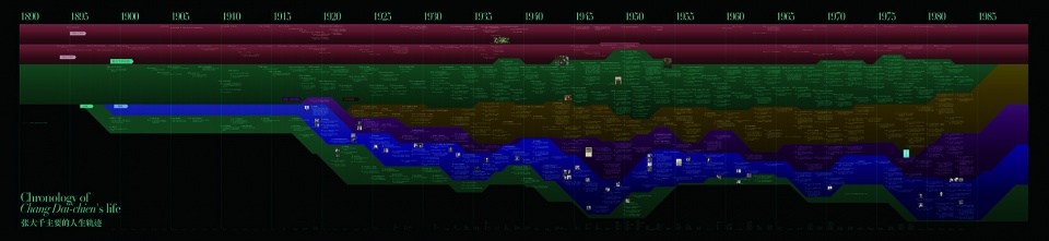 The chronological table consists of several timelines of the life of Chang Dai-chien, his family, teachers and friends, as well as reports, visits, and major historical events both domestically and internationally. It is designed to explore and analyze the connections between these events from different angles, allowing us to understand the underlying reasons and consequences of Chang Dai-chien’s journey of life. This is an important research means of analyzing historical figures and events.