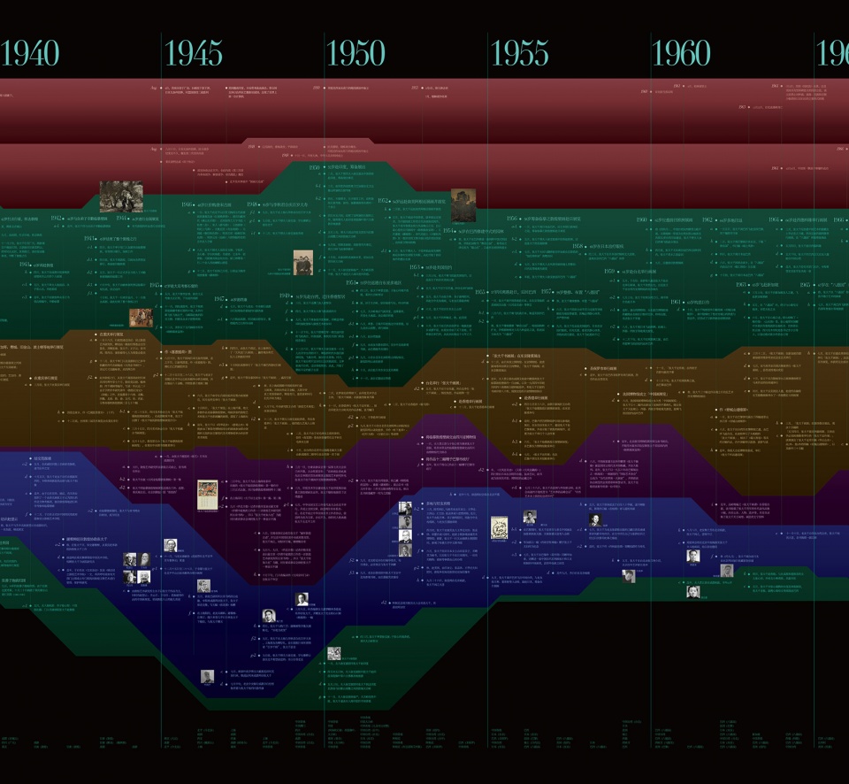 年表包含张大千、亲属、师友、报道与访问事迹、国内外历史大事件几条时间线,其编排旨在通过对比不同角度的时间轴线上所发生的事件,来分析、推敲张大千人生经历的种种前因后果,从而挖掘出隐藏在表面之下的信息。是剖析历史人物、历史事件的重要研究手段。