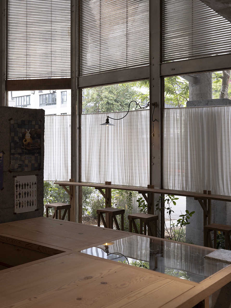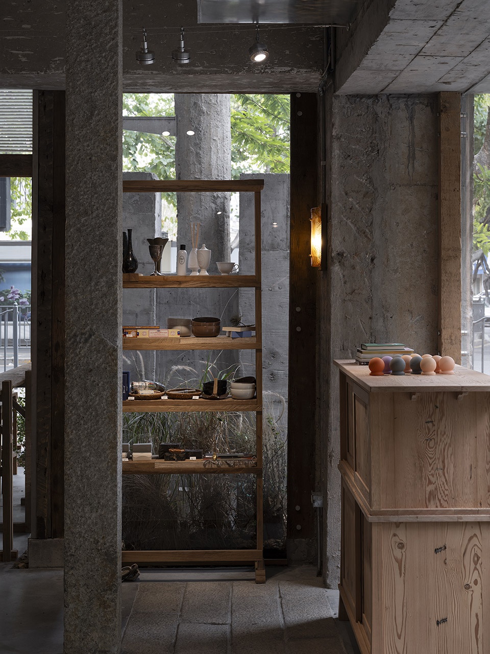 店内以 “工作室开放日 openday ”为出发点,它由自然的松木为主要基底,制造了一个工作室主人外出的轻松场景。“创作者工作室”是一个独处空间、个人创作场域、会客区域多位一体,并杂糅着个人审美、家具品味、兴趣爱好、生活趣味、收藏品,和个人创作元素的空间,它松弛,充满个人色彩,沉淀着良好的品味。既私人化也有开放感。为MSLAN在原本的服装零售的基础上,融入杂货、咖啡提供了场景语境。
