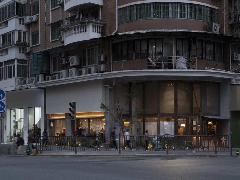 “MSLAN corner”是退化建筑为服装品牌MSLAN设计的全新街铺模型。因处在一个街区的街角,这家店在设计上考虑了与街角的特殊关系,退让出一个小小的、供人休息的口袋“公园”。