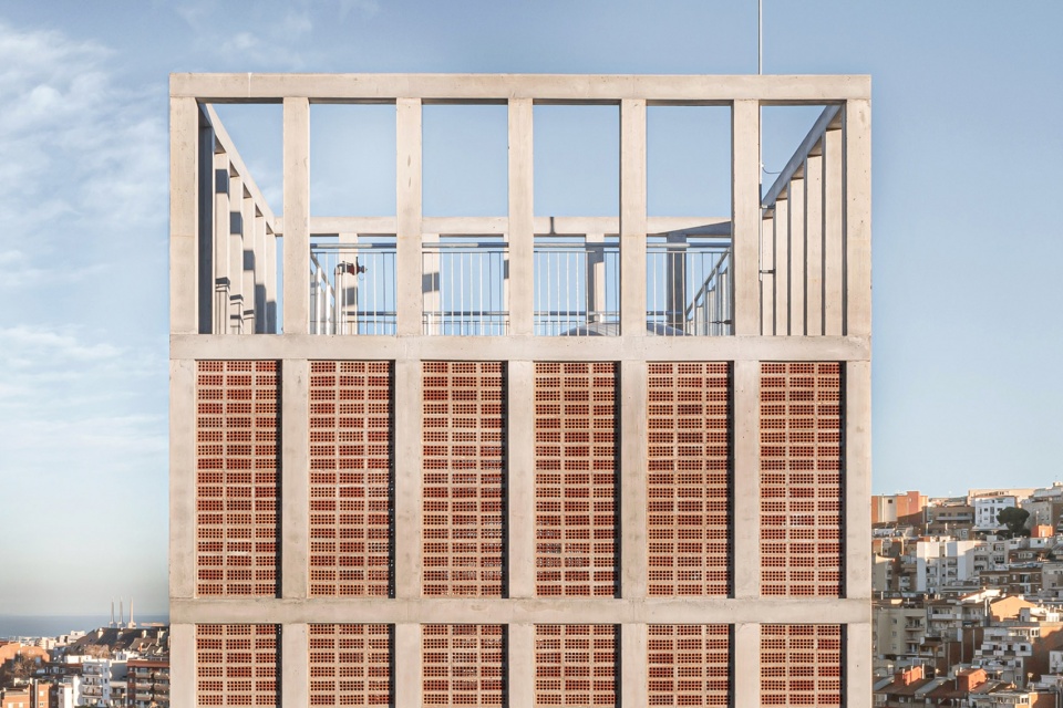 除了能够实现预定的功能需求外,塔楼还充当了人类和鸟类的气候庇护所。由深度陶瓷件构成的外立面格栅,确保了室内空间的持续通风,并在不使用任何人工空调系统的情况下降低了外部温度。同时,在其中一面外立面上设置了12个雨燕巢,以促进生物多样性并为常出没于Collserola山脉的某种鸟类提供栖息地。从这个角度看,该项目不仅是一个当前使用的基础设施,更是一项能够历久弥新的工程。塔楼的内部隔断和围护结构允许根据需要进行调整,以适应其他功能,延长塔楼的使用寿命,塔楼还可作为观察Horta-Guinardo区的城市观察点。
