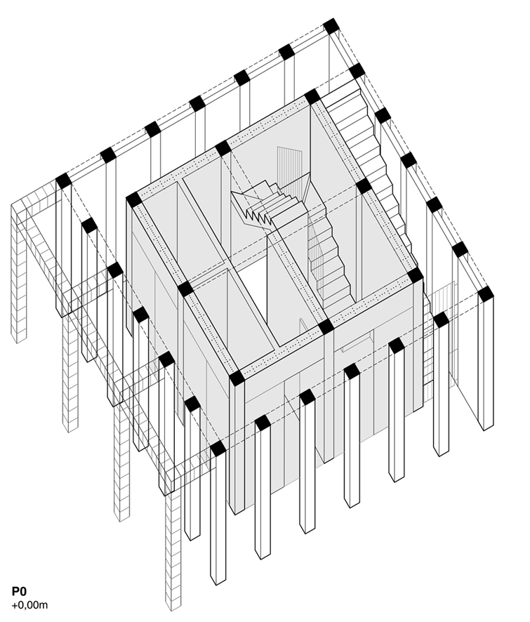 The tower is proposed as an open system that allows great flexibility and functional adaptation to accommodate current programmatic requirements and anticipate future changes in use. A 7.15 m square floor plan is proposed based on a grid of concrete pillars and girders that generate a three-dimensional mesh from which 4 empty spaces of 2 x 2 m are obtained on each floor in order to accommodate a multiplicity of spatial situations with maximum adaptability. to the program. The interior spaces recreate extreme building situations to allow firefighters to develop their practices (double and triple spaces, spiral staircases, cat ladders, wells, doors, windows, etc.) while on the outside there are balconies in different positions to enhance rappelling and vertical rescue practices.
