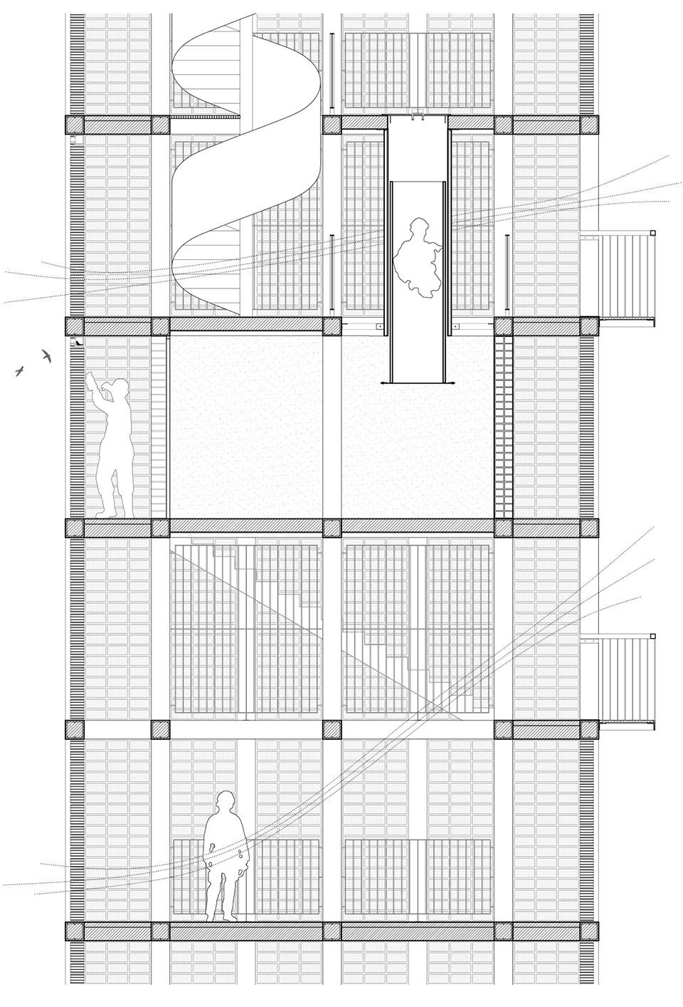 ▼塔楼还充当了人类和鸟类的气候庇护所,the tower acts as a climatic refuge for people and birds