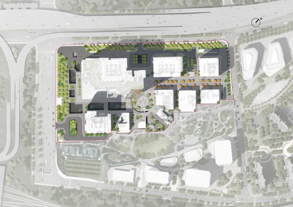 ▼徐汇万科中心1、2、3期总平面图,Xuhui Vanke Center Phases 1, 2, 3 Master Plan