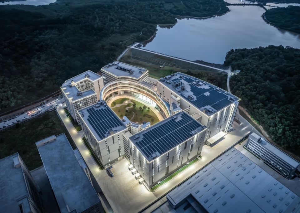 The 4500m³ water storage and cooling project buried underground is not only for fire-fighting purposes, but also the essential facility for off-peak electricity consumption. This, in conjunction with solar photovoltaic panels and intelligent building control systems, maintains the inherent technicality and ecological nature of architecture. Rather than bringing greenery into the office, this project chooses to place both work and life in the nature.