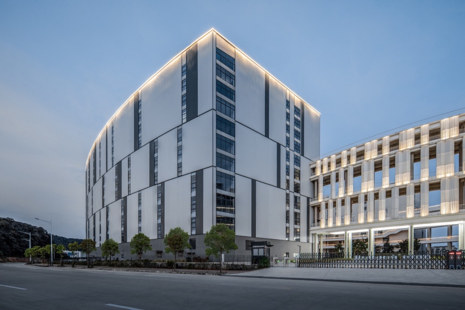 在工艺生产属性的指引下,工业建筑始终在追求秩序与效率的空间理性。回归空间组织的根本,即内在的组织和人的行为本身推导的创作原点。根据规划,星园除了是办公与生产空间,还承担了展示、研发、检测、物流仓储、员工生活等功能。制造中心从原料运输到加工,再到测试,以及成品的存储,不同的工艺流程间均遵循严格的规范。除了具备物流与人流分离外,同时需为人工智能设备预留空间的可能性。