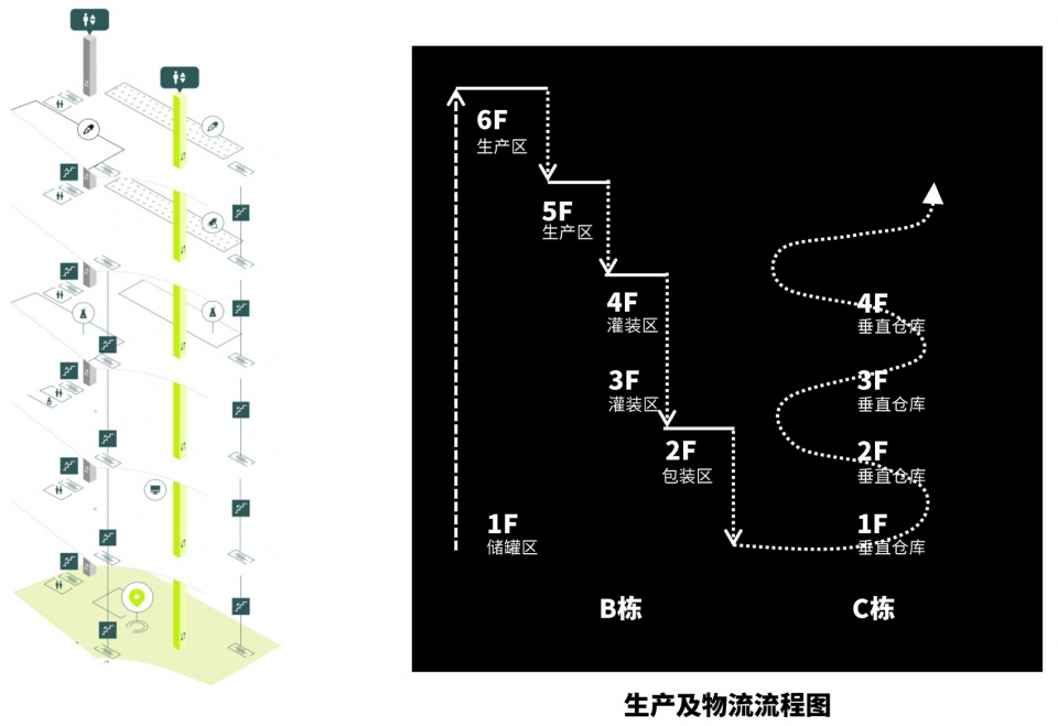 传统的工业规划策略无法解决工厂在工艺物流和办公人流上的矛盾,因此亟待创造一种既能保持各技术生产单元独立性,又能促进不同工艺技术人员效率最大化、聚集研讨、社会交往的新型工业空间形态。