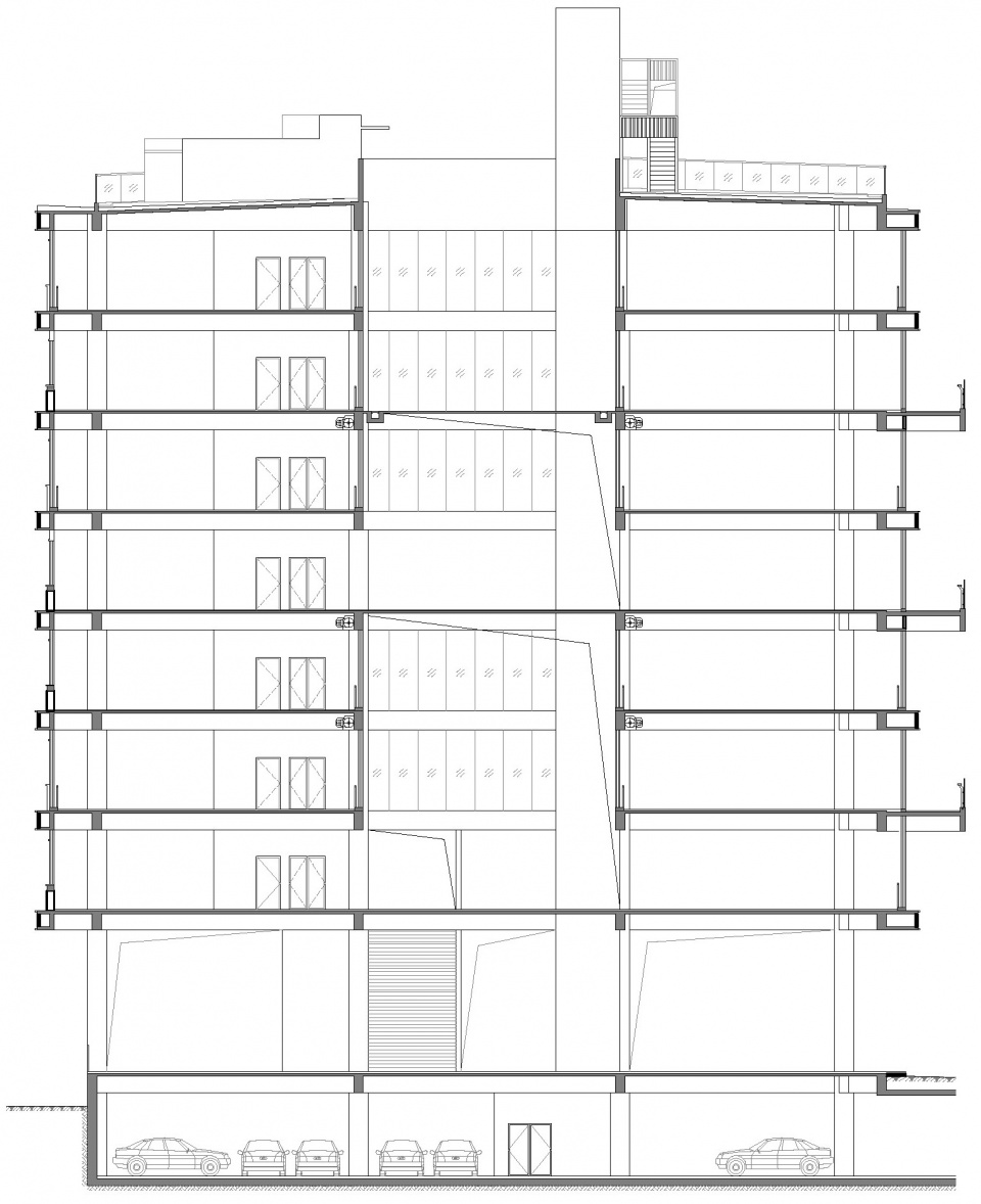 ▼办公楼剖面图, Section of the office building