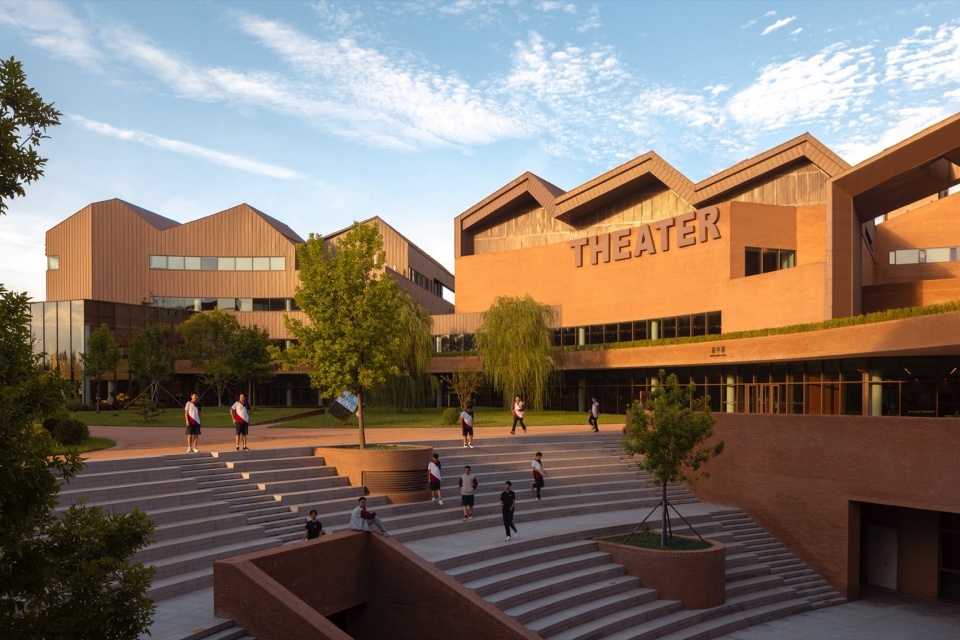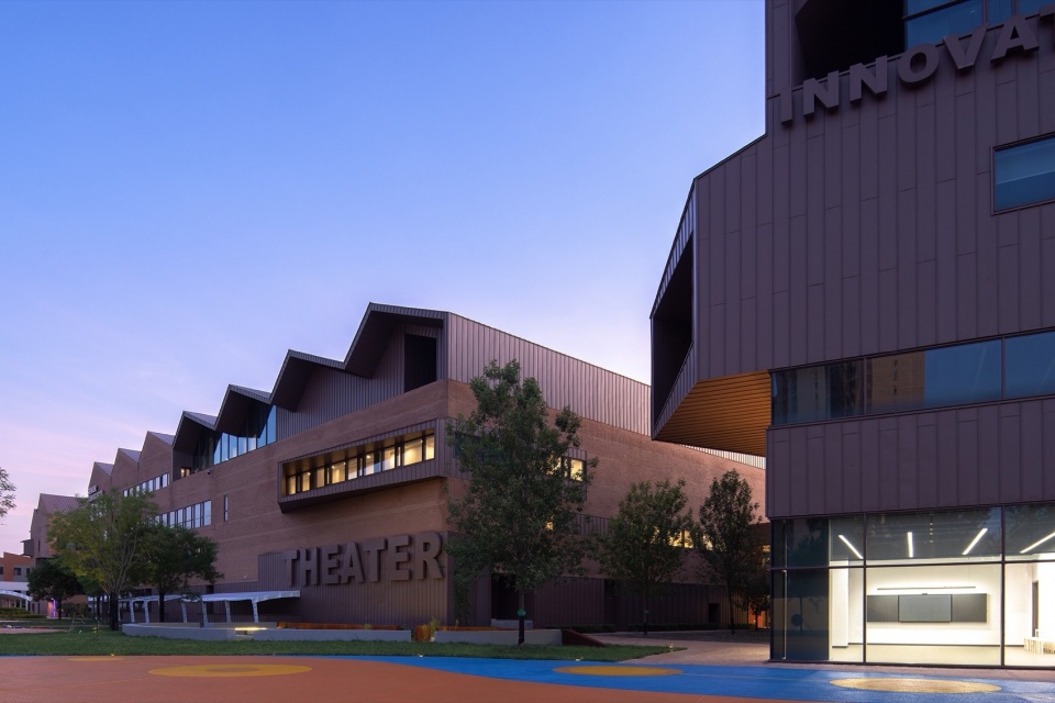 2017年开始设计的这所学校也许是国内较早的一批进行教育综合体理念的实践,当时大多数公办教育的设计往往呈现出现有规范为出发点、高出房率、低容积率的条状空间布局,以深圳为代表的新型校园模式探索也才刚刚起步,同时民办教育也未能全面出圈,基本延续了公立校园模式,对以学生为中心、追求个性化、跨学科与通识教育、鼓励情感社交等内容也探讨不多,在这方面理念领先的外国人子女学校基本照搬国外形式不符合国内规范与国情。