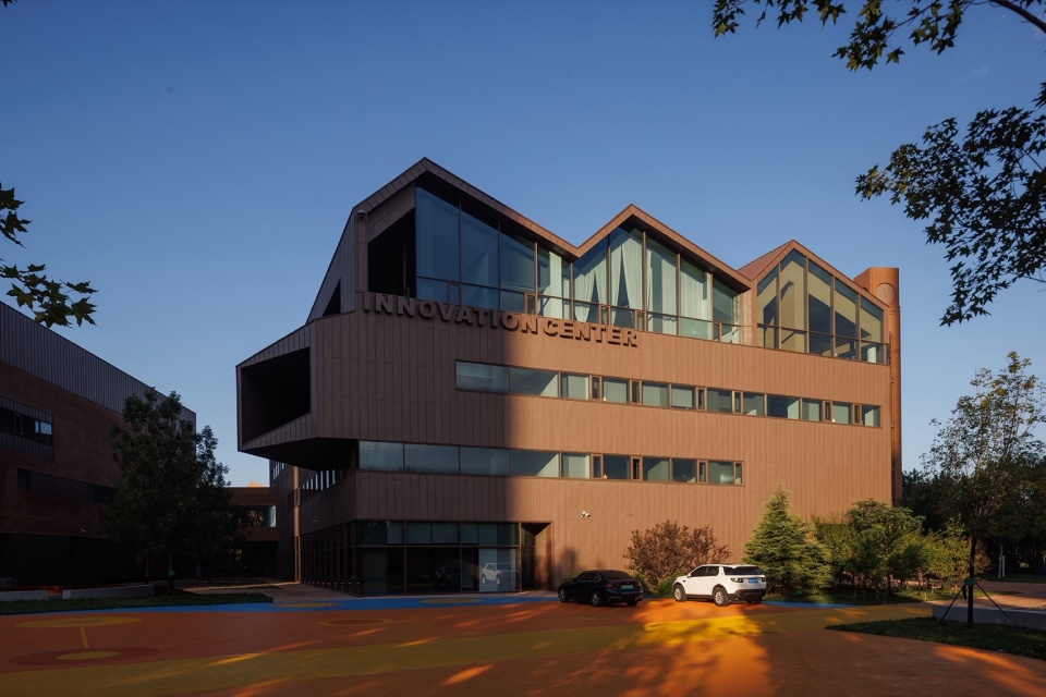 ▼创新中心中央庭院一侧外观,Exterior view of the Innovation Center from the central courtyard side