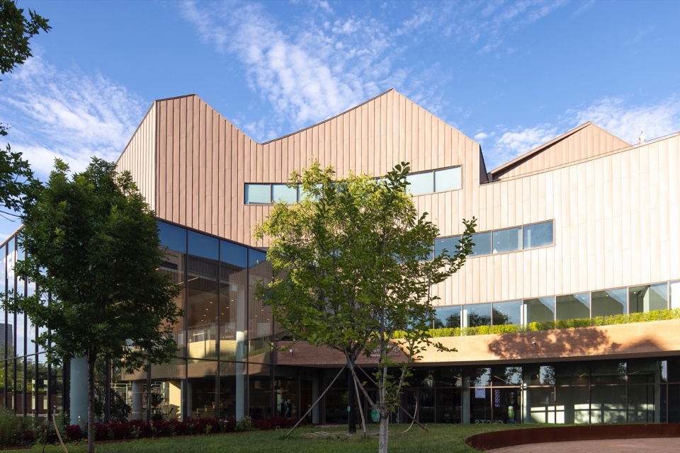 A marriage of continuous titanium-zinc sloping roofs and expansive exposed brick walls defines the visual language. The self-healing titanium-zinc standing seam system retains its luster over time, while light coffee-hued shale bricks lend a modern twist to traditional masonry. These contrasting materials—crafted to age gracefully—symbolize dialogues between hand and machine, warmth and austerity, tradition and innovation.