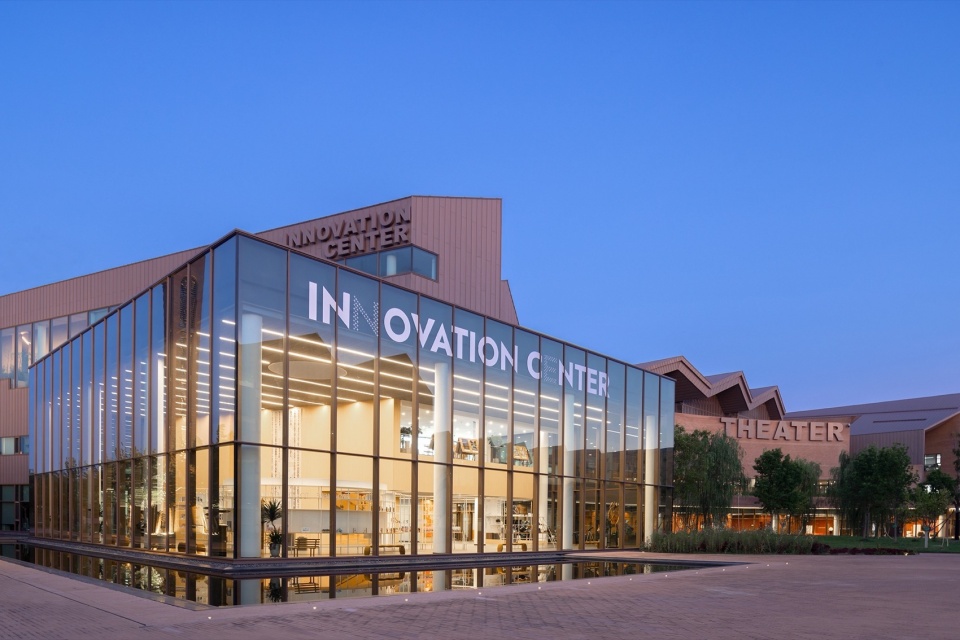 ▼创新中心与剧场东立面夜景,Night view of the east façade of the Innovation Center and theater