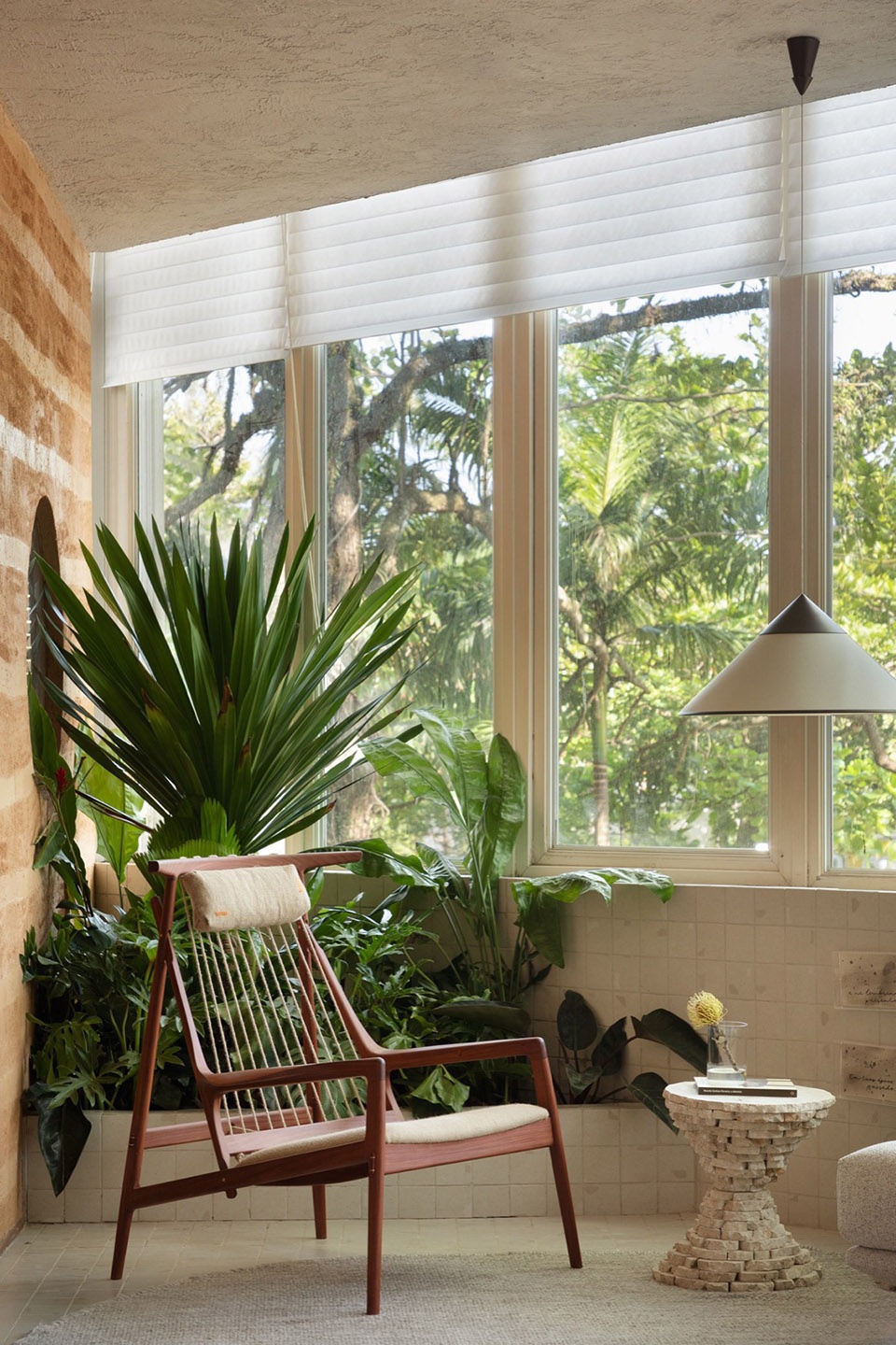 同样,家具的选择突出展示了小型生产者和由里约热内卢艺术家和工匠手工制作的作品,充分考虑了每种木材和制作过程对环境的影响。这一工作指导了材料的选择,有时甚至会排除某些材料,以追求保护和可持续发展。我们并不否定工业和工业过程,但我们希望重新连接我们的家园,使其由人、故事,尤其是由人类之手塑造,形成与大工厂及其机器人的反向流动。我们在不完美中寻求美,并尊重过程,因为这就是生活。