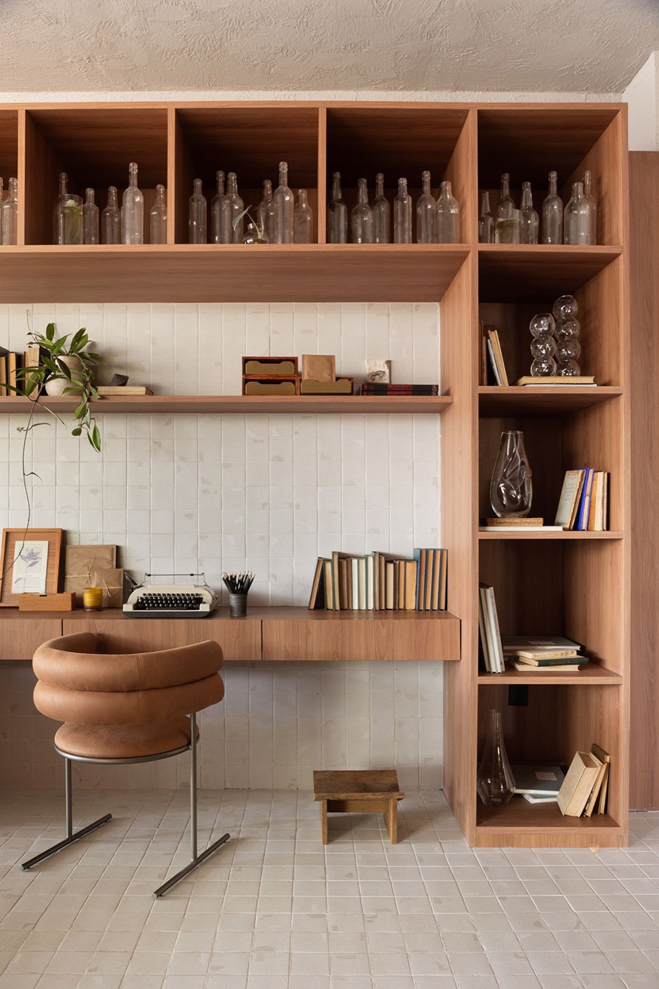 由于该项目将木工作为主角,Sequoia图案由Casttini独家定制,这是一种带有土色和红色调的木材,生长在巴西南部的Canela原始森林中。该图案的定义旨在为空间增添温暖,唤起触感和质感。在选择瓷砖涂层时,我们同样寻找能够直接与我们的理念对话并强化巴西特色的材料。我们选择了Portinari的Maracangalha,这一系列的创作灵感来自巴西巴伊亚州的元素,如五颜六色的房屋、殖民风格的瓷砖、石铺的街道和桑巴音乐。该图案采用小型格式,覆盖了整个地面和一些墙面,营造出统一且独特的图案。作为对陶艺瓷砖的重新诠释,材料具有实用性、易清洁性以及Portinari提供的耐用性。