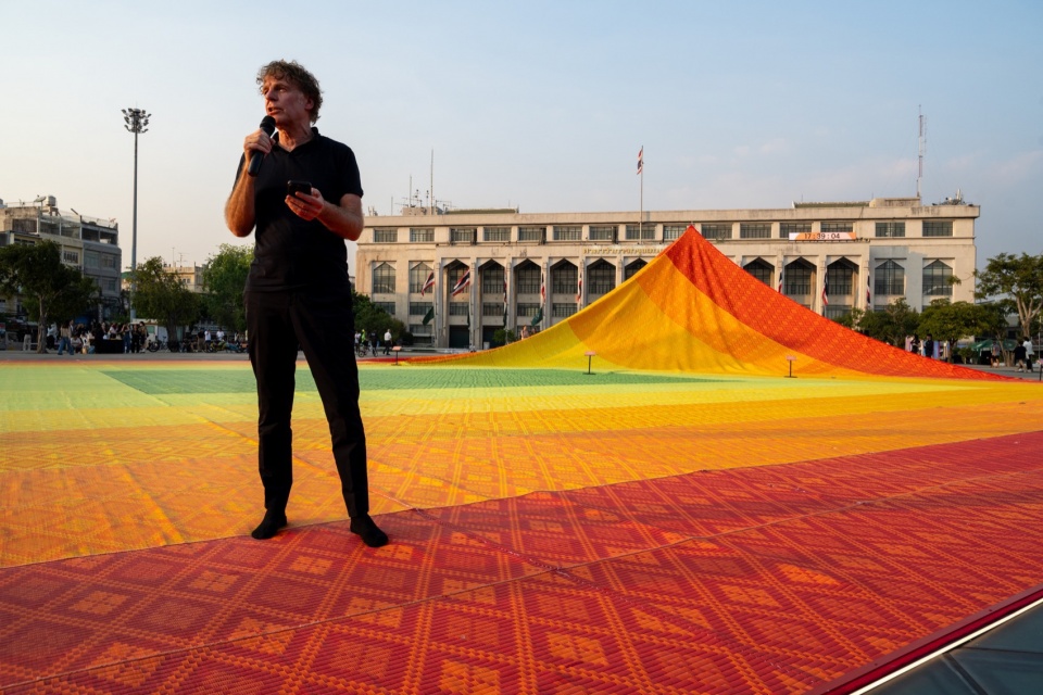 The Mega Mat was created in collaboration with the Creative Economy Agency, PTT Global Chemicals, and the Embassy of the Netherlands. The installation is one of a number of MVRDV actions at Bangkok Design Week: on February 13th–15th, in collaboration with We!Park the firm exhibited PROMPT PARK, a participatory AI project to reimagine a leftover space under the Sirat Expressway at Surawong Road. On February 15th, MVRDV founding partner Winy Maas presented the lecture “People, Places, and Architecture” in the Central Convention Hall at Silpakorn University, a recording of which will soon be made available.