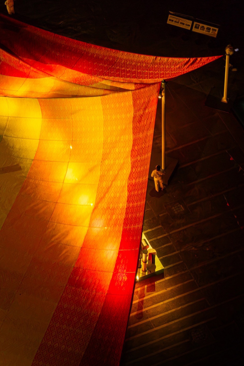 ▼532个模块共同编织成一张巨型垫子,532 modular pieces, woven with a traditional Thai textile pattern