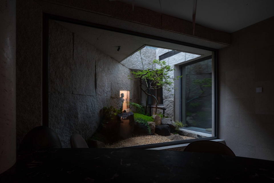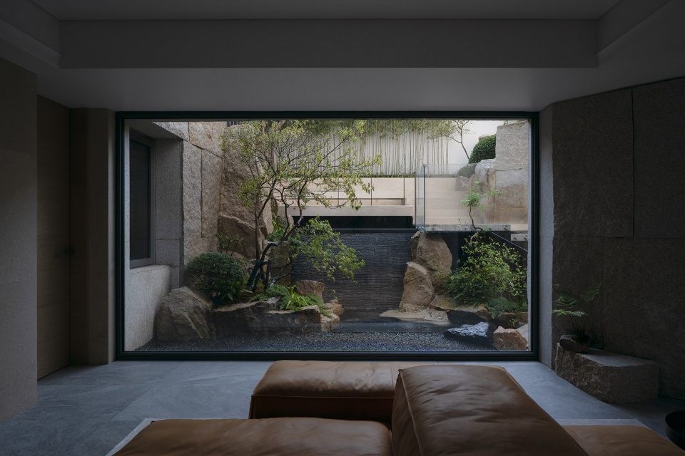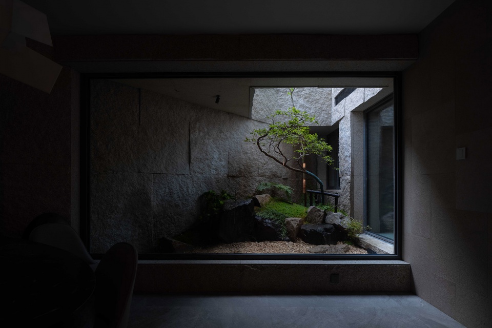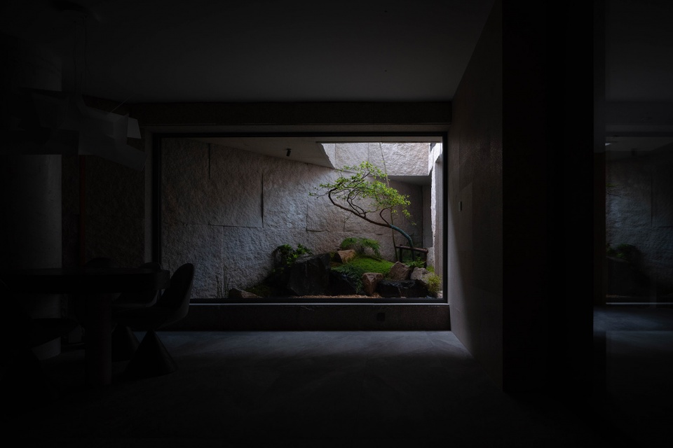 The intervention of landscape professionals in the stage of civil construction transformation is an important condition for the presentation of landscape effect. Inspired by the stream and valley in Fan Kuan’s “River Mountain Travel Map”, the main scene excavated the original first-floor courtyard, divided the first-floor courtyard space with an area of about 200 square meters, gave half of the courtyard area to the negative first floor, and added a patio to the negative first floor to ensure the lighting of the negative second floor. From the structural transformation to the final completion, it took two years to stack rocks into mountains, create streams and waterfalls, cut stones in the cliffs as steps, walk in the courtyard and stop, as if you were in the stream, forest and spring.