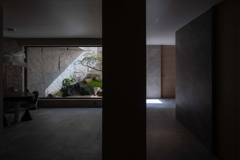 Living in the downtown, the land is precious, the owner of the home usually from the negative second floor of the parking garage into the room, home is easy, home is warm. Through the structural transformation of the backfloor, light and warmth are easily achieved on the negative second floor. The design unit sets up a patio garden from the first perspective of the garage entering the house. Natural sunlight and rain will fall down from the patio, making the originally dark and depressing underground space vivid and bright.