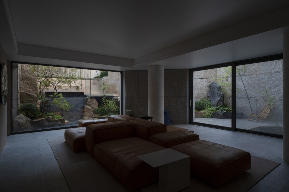 穿过负二层天井花园,我们将进入位于负一层的会客厅。