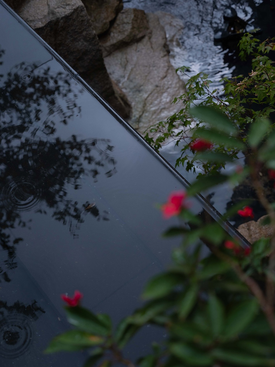 厚重的地下室墙壁变成了自然的山体,犹如从石缝中生长出的杜鹃与山石草木构成了一幅绝美的框景。
