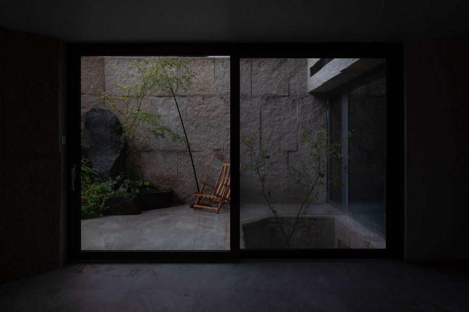 The retaining wall of the sunken garden is treated with natural granite, we hope that both from the interior to the exterior; Or enter the garden, as if you are in nature, rock walls instead of mountain walls, cantilevered stairs cut out of the rock cliffs, and elegant and verdant plants stretch in the rock valley.