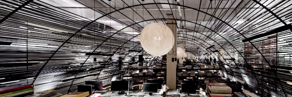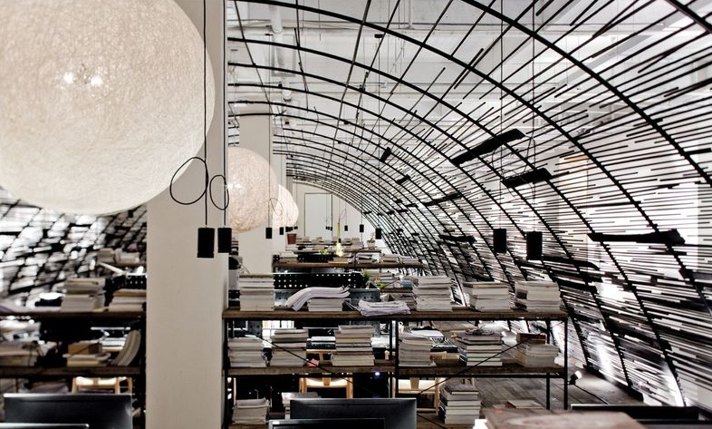 设计师不是在水泥瓦砖之间堆砌自然,而是在创造生态自然,这是叙品想要告诉大家的理念,往里走看到得是有无数长钢管纵向横向排比构造的设计部门办公室,钢管的弯力在这里形成了美学的空间,这样穹顶其实是仿造的发动机外形,里面是叙品的设计团队,也就是叙品的源源动力,是他们整个团队推动了叙品向更高更远更广的未来腾飞!此外设计师的灵感自由和工作的私密性都融合在这个空间设计里,你发现了吗?