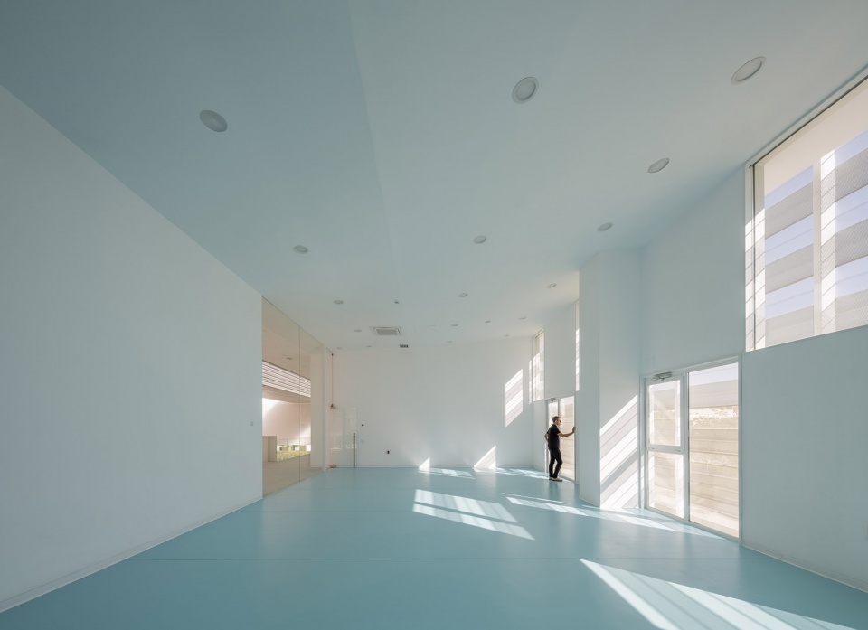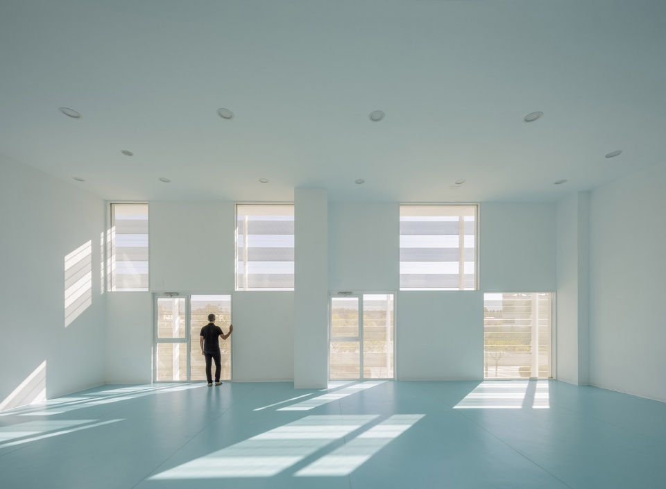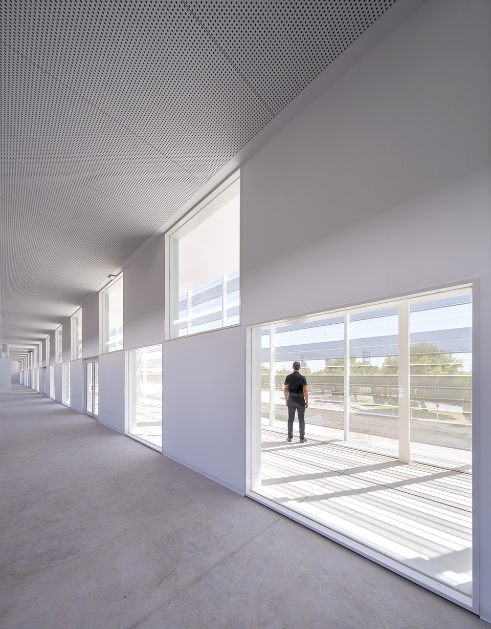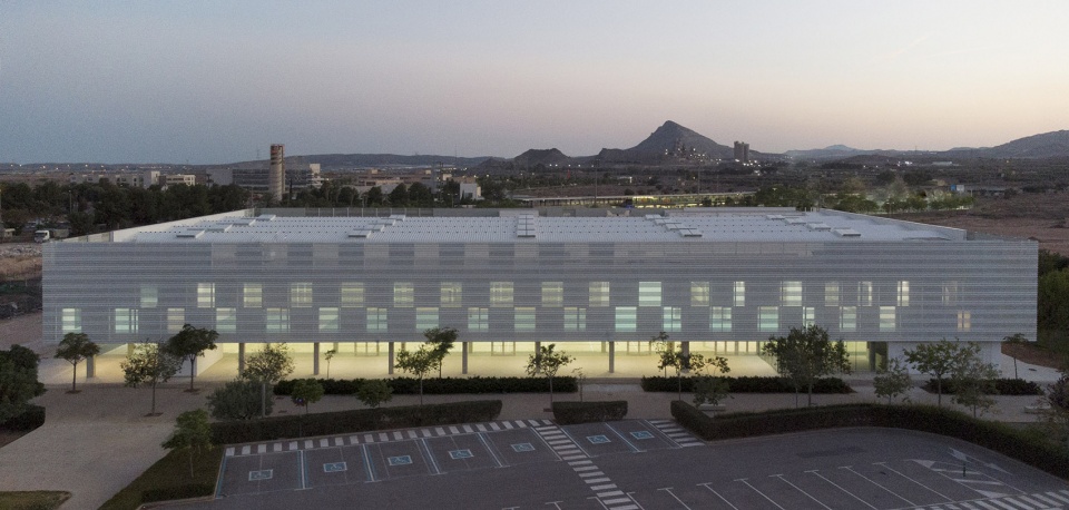 The building is configured as a very high energy efficiency system, maximizing the natural lighting of all spaces and configuring a motorized natural ventilation system that allows cross ventilation of the entire volume through its facades and the vents located in cover, allowing the nighttime dissipation of the heat accumulated during the day. These passive measures are complemented by the provision of an aero thermal system for the production of DHW and a photovoltaic installation for the production of electricity, thus configuring a building with almost zero energy consumption.