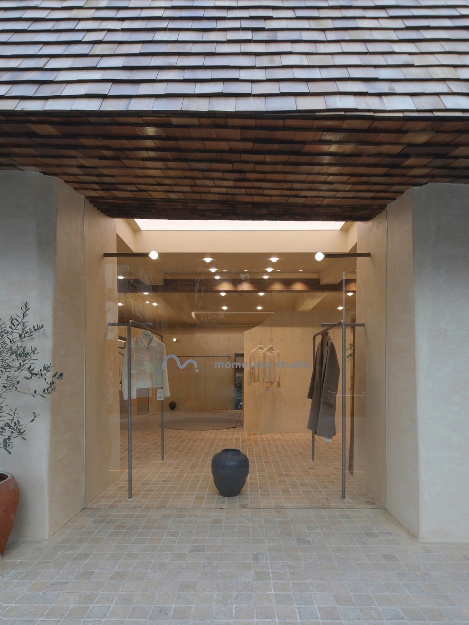 在繁华都市里MOMO ERA致力于为都市女性提供不同产品线的服饰。品牌在选址时,避开了直面熙攘的街道,而是拐进了一个创意园区内部,与街道喧嚣保持恰到好处的距离,以一种内敛专属的调性存在于园区中,这是一次对零售店的挑战,却也给设计带来了新的局面。业主委托多么工作室为其设计改造,并期望营造出一种与人亲近,自然纯粹且弥漫着旧时光韵味的购物环境,让每一位顾客都能感受到家一般的松弛与自在。最终,我们寻回到了一个亘古常新的议题“身体-空间”。