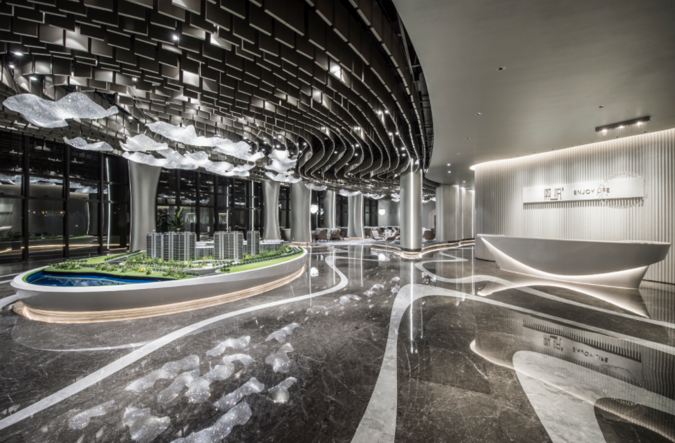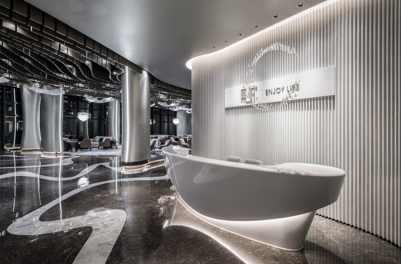 "Water" is out of nature and benefits all things. It is soft and does everything. It is pure like glass and white jade. It sparkles in the sun. Looking from a distance, it looks like a silver belt decorated with precious stones. It is calm and contains power The inspiration of the design comes from the capture of natural beauty, the extreme integration of continuous curve elements, making full use of the curve structure of space, the method of continuous cascade design of devices, strengthening the rhythm of fantasy flow, and light and shadow flow with the curve. You can feel the unique visual experience of growing inside and outside freely.