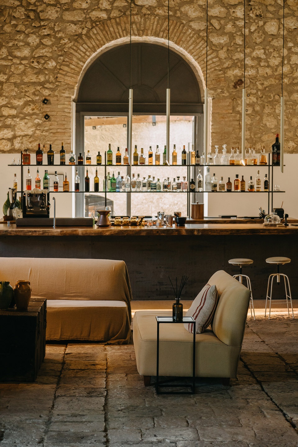 Susafa的酒吧位于旧榨酒区域内,提供来自附近酒庄如Castellucci Miano和Tenute Tasca d’Almerita的西西里葡萄酒,并配有如马尔萨拉(Marsala)和帕西托(Passito)等当地酿制的利口酒,是品味西西里风味的理想场所。