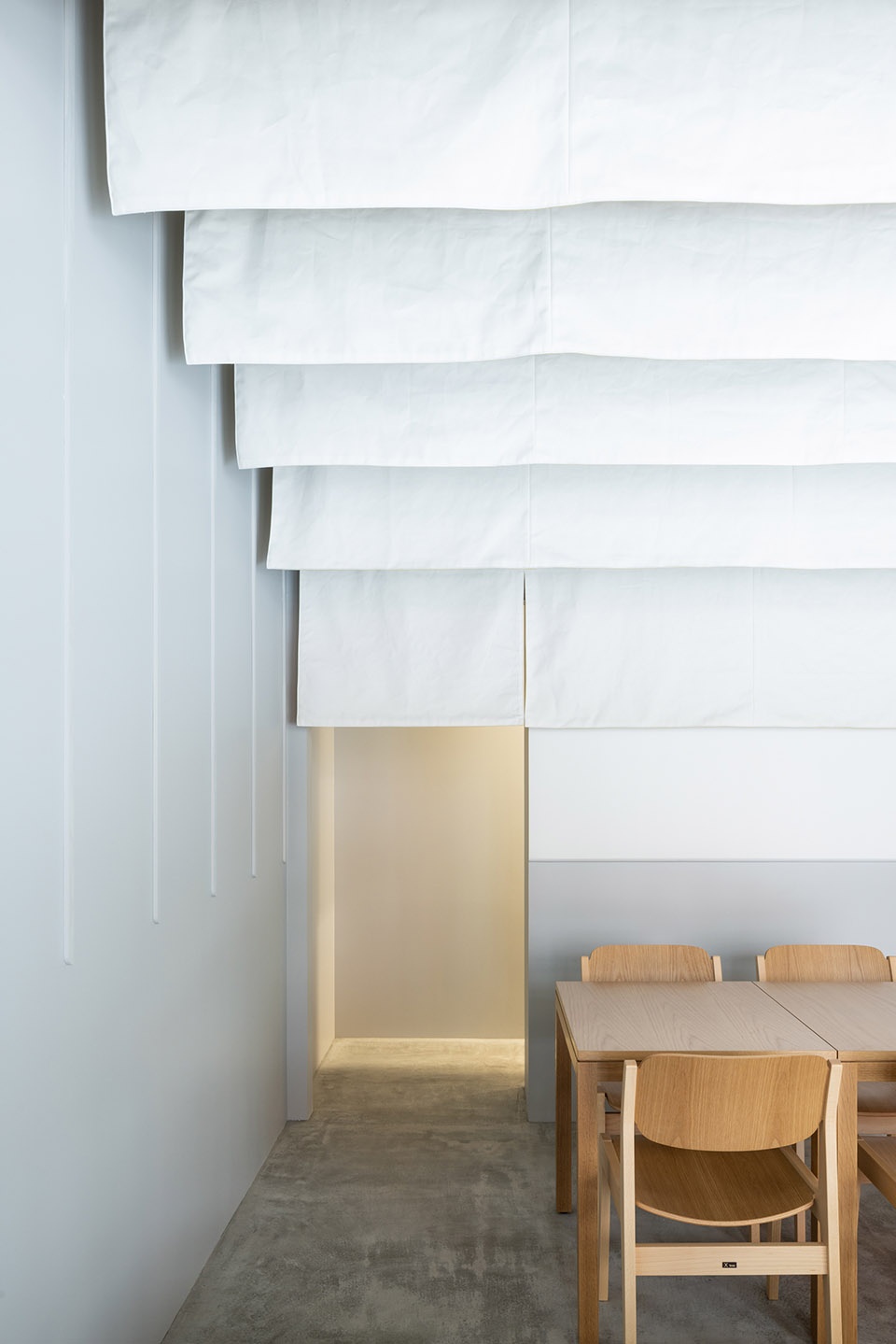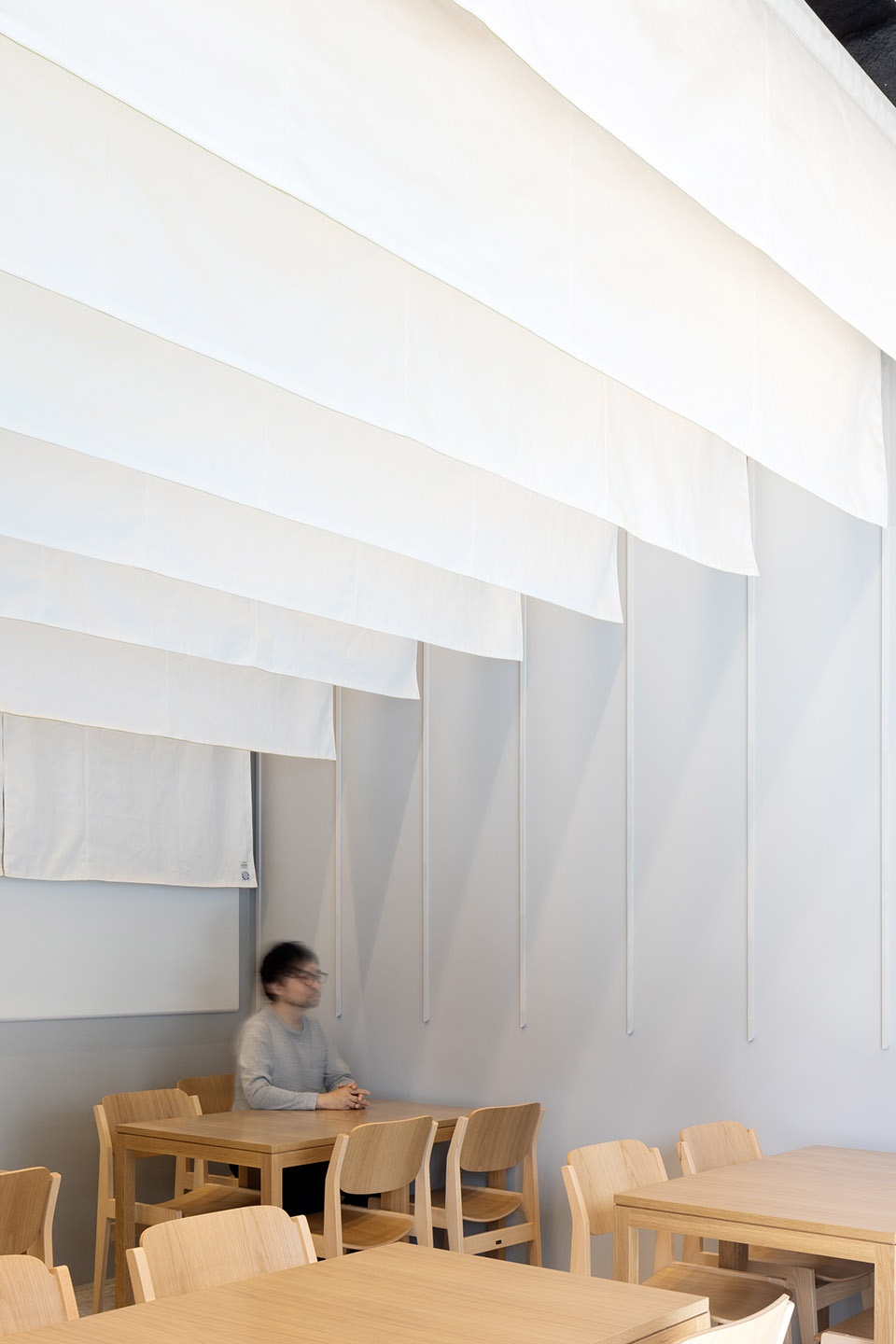 在尊重暖簾传统的同时,我们尝试让其与建筑和室内设计建立新的关系。最终,我们认为这次设计成功地通过暖簾诠释了店铺的理念——“以日本文化丰富日常生活”,让暖簾成为连接传统与未来的媒介。