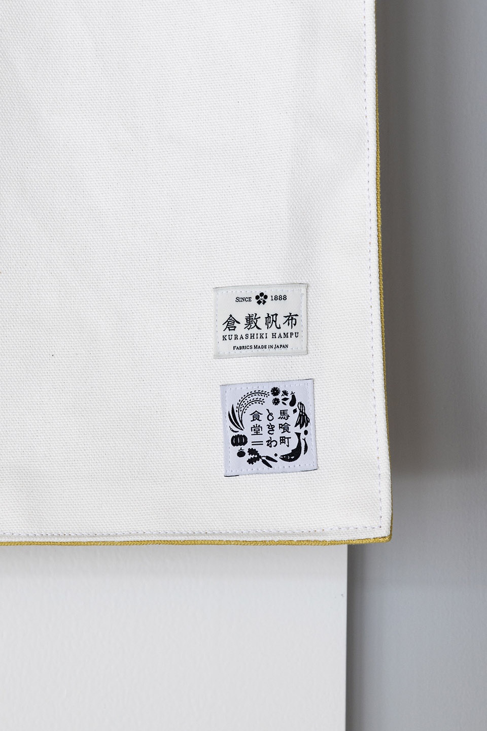 The front and back sides of the curtain are made of different colors of canvas, and the length of each side increases as one moves toward the back. The length of each side is longer the further back you go. This gives a different impression when you stop by the restaurant from the street and when you take a seat or leave the restaurant after finishing your meal.