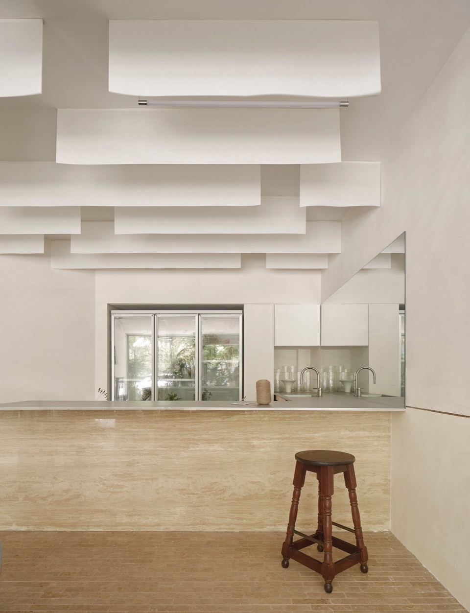 Materials: Lime stone, handmade bricks, washi paper, travertine