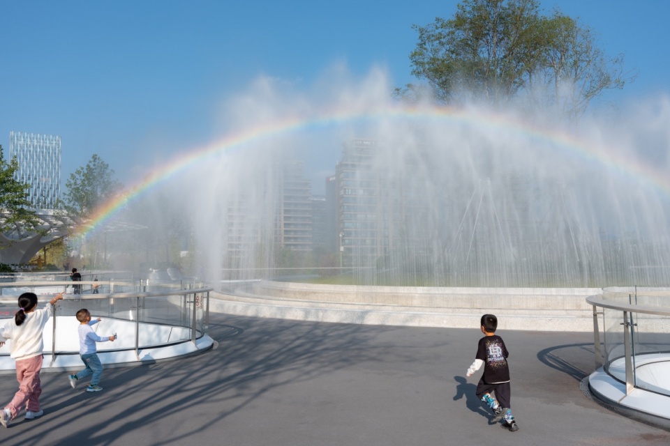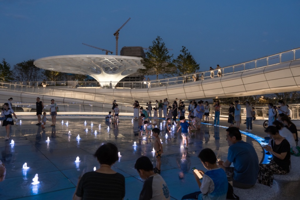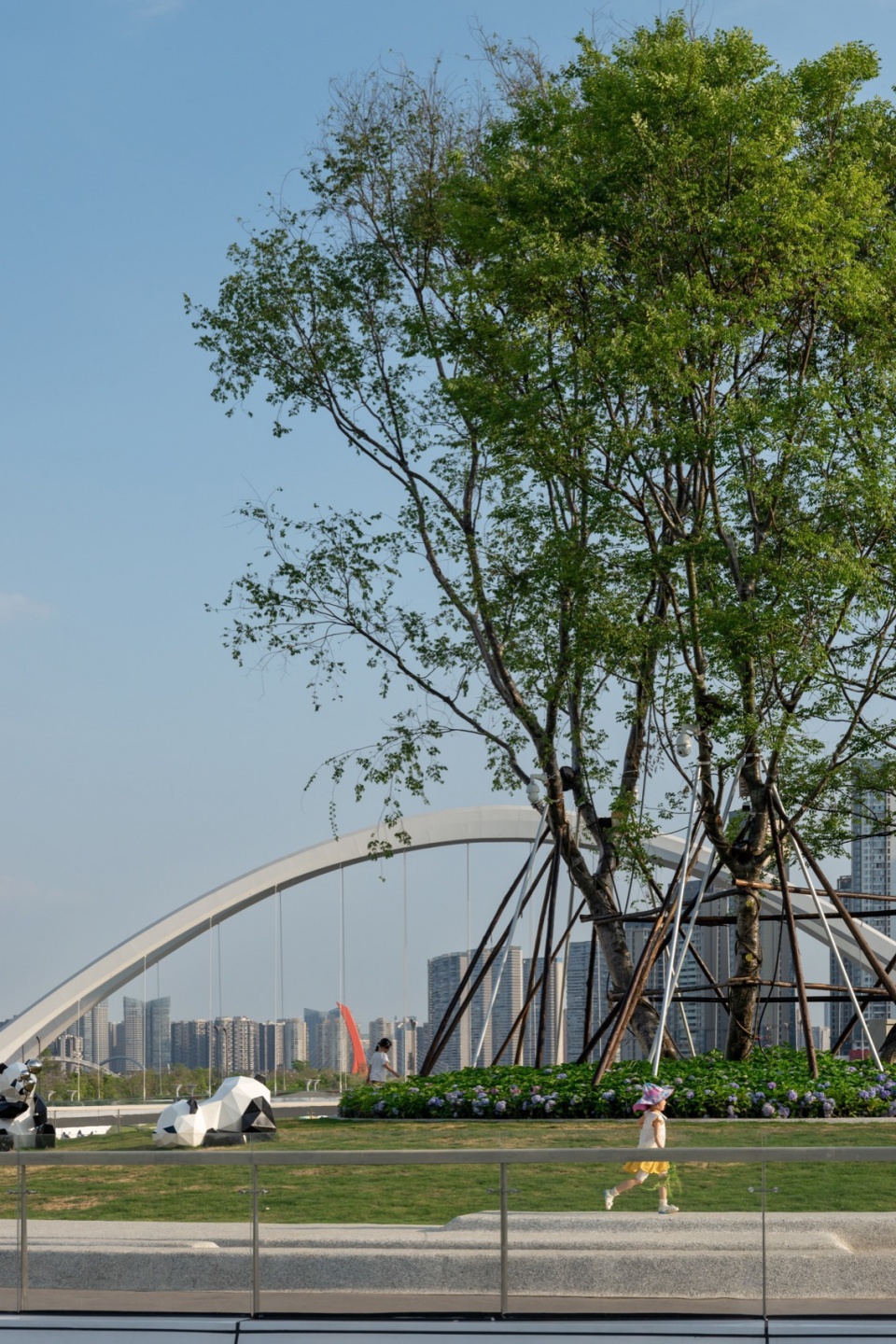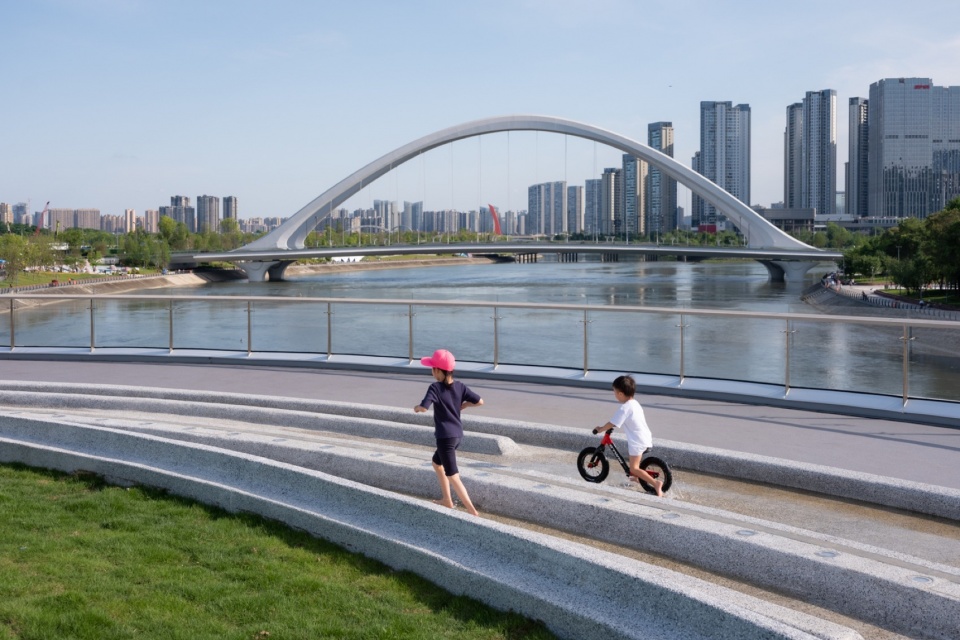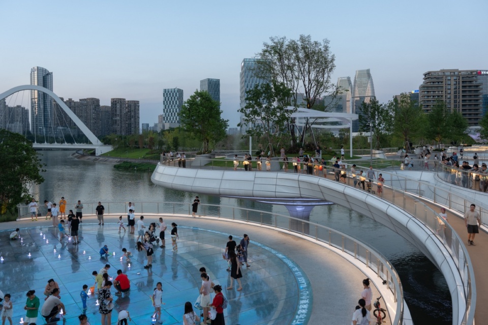 Following the opening of the Jiaozi Pedestrian Bridge Park, it has successfully linked the Jiaozi Green Axis Park and the riverside greenway, attracting a large number of visitors for leisure activities. Whether it is runners and cyclists in the early morning or evening, residents enjoying a post-work stroll, children playing in the water on summer evenings, or tourists admiring the night tours, the bridge offers a unique multi-dimensional experience.Over time, the park will reflect the changing seasons, offering a variety of evolving scenes and sensory experiences. Quietly accompanying the city’s growth, the bridge stands as both a functional landmark and a witness to the area’s development, fostering connections between the environment, the community, and the future of urban life.