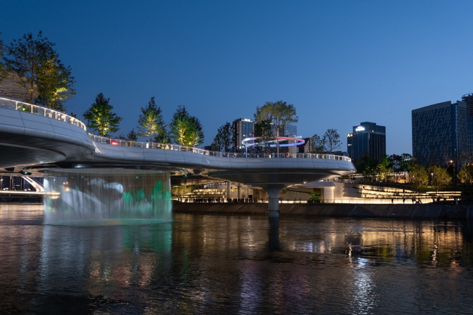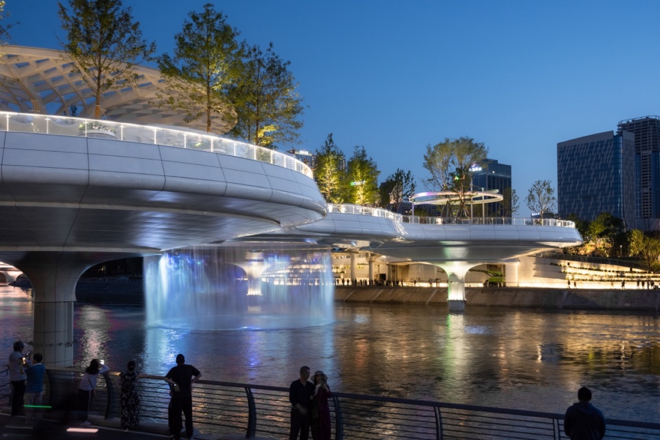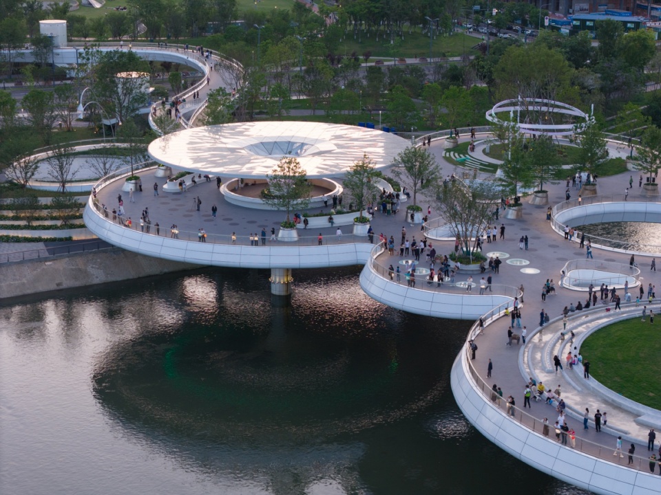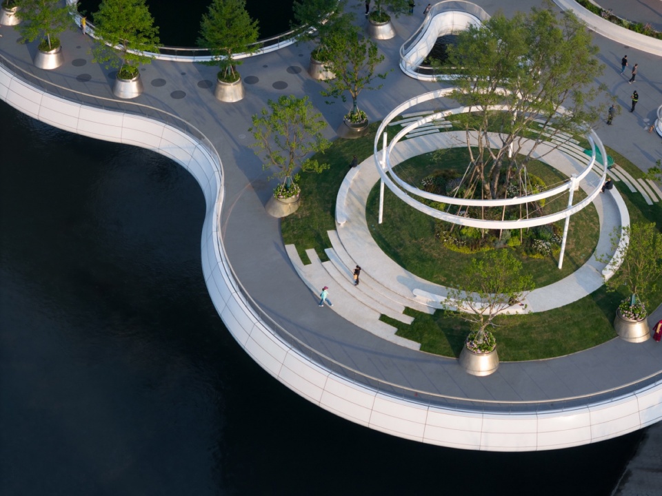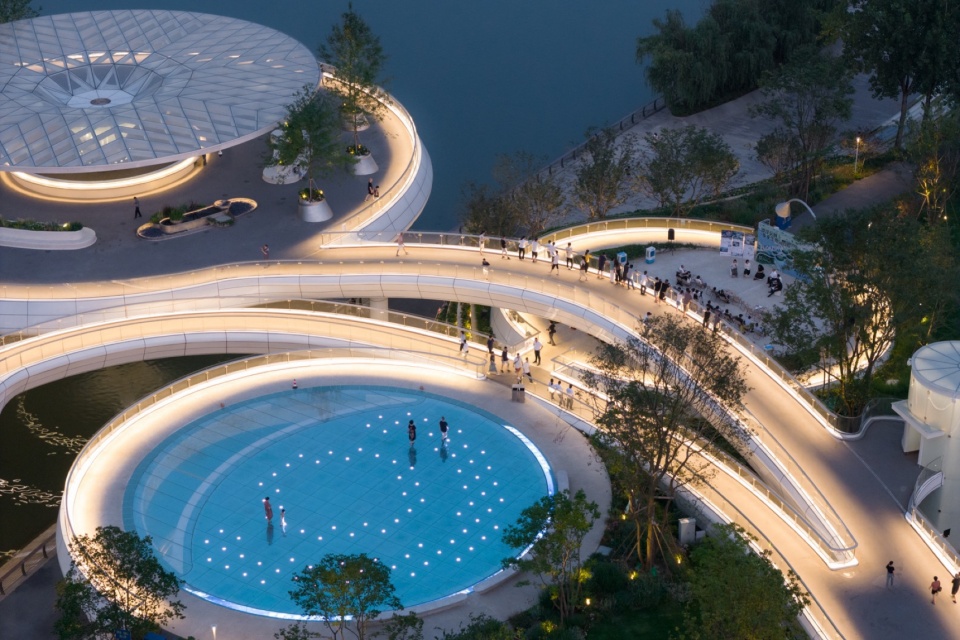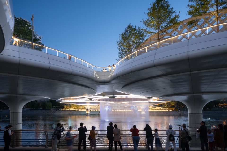 Following the opening of the Jiaozi Pedestrian Bridge Park, it has successfully linked the Jiaozi Green Axis Park and the riverside greenway, attracting a large number of visitors for leisure activities. Whether it is runners and cyclists in the early morning or evening, residents enjoying a post-work stroll, children playing in the water on summer evenings, or tourists admiring the night tours, the bridge offers a unique multi-dimensional experience.Over time, the park will reflect the changing seasons, offering a variety of evolving scenes and sensory experiences. Quietly accompanying the city’s growth, the bridge stands as both a functional landmark and a witness to the area’s development, fostering connections between the environment, the community, and the future of urban life.
